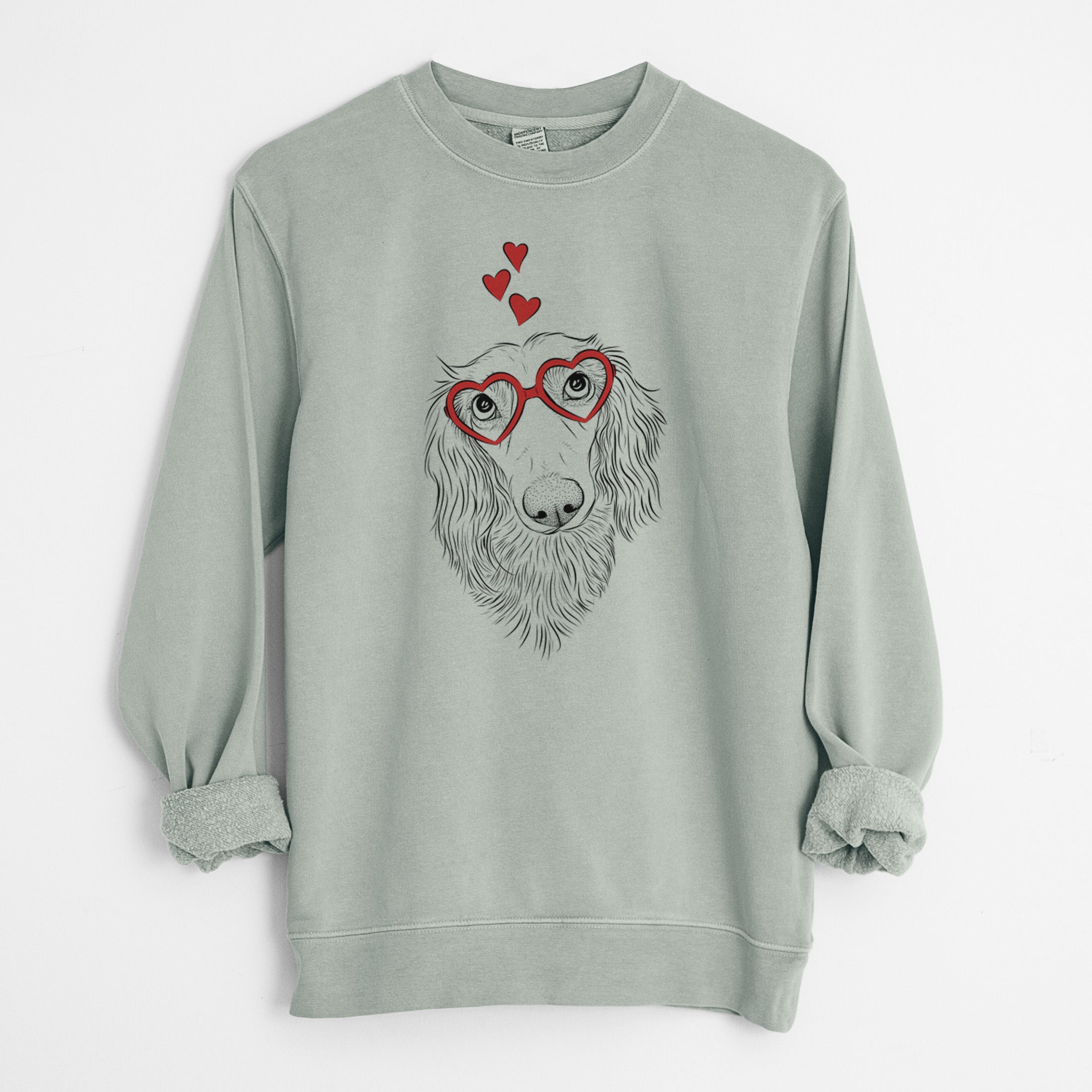 Valentine Mr. Rusty the Long Haired Dachshund - Unisex Pigment Dyed Crew Sweatshirt