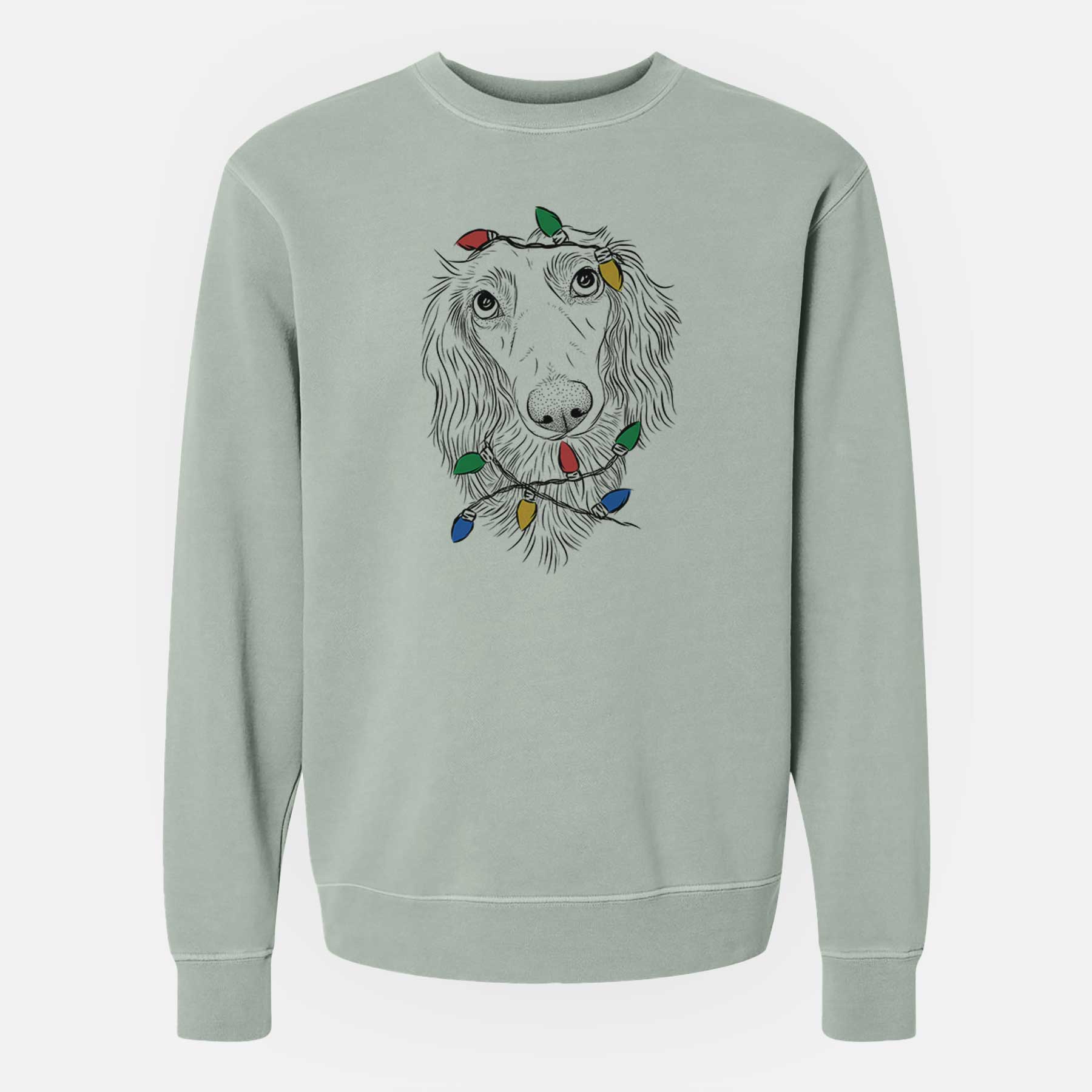 Christmas Lights Mr. Rusty the Long Haired Dachshund - Unisex Pigment Dyed Crew Sweatshirt