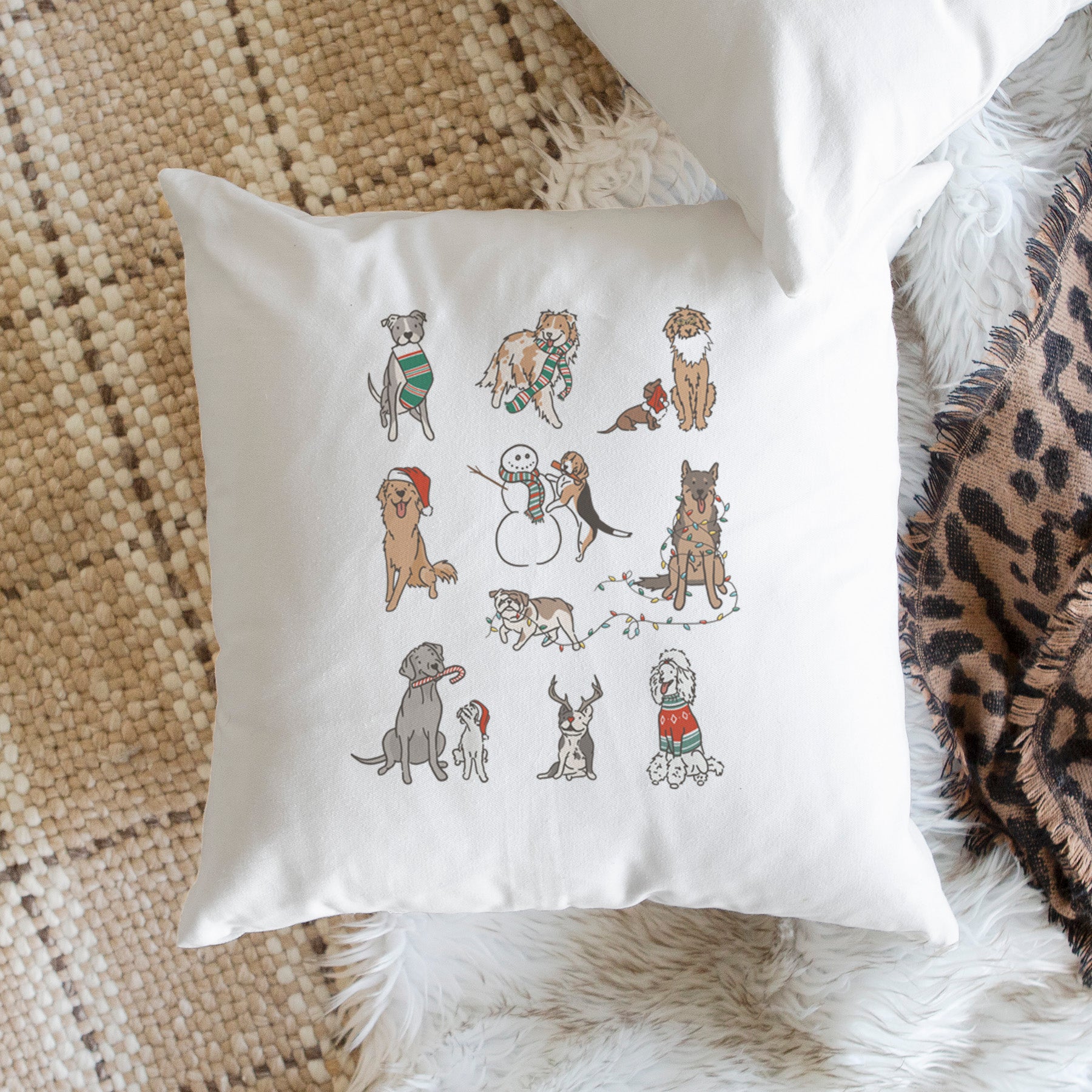 Christmas Pups - Throw Pillow Cover