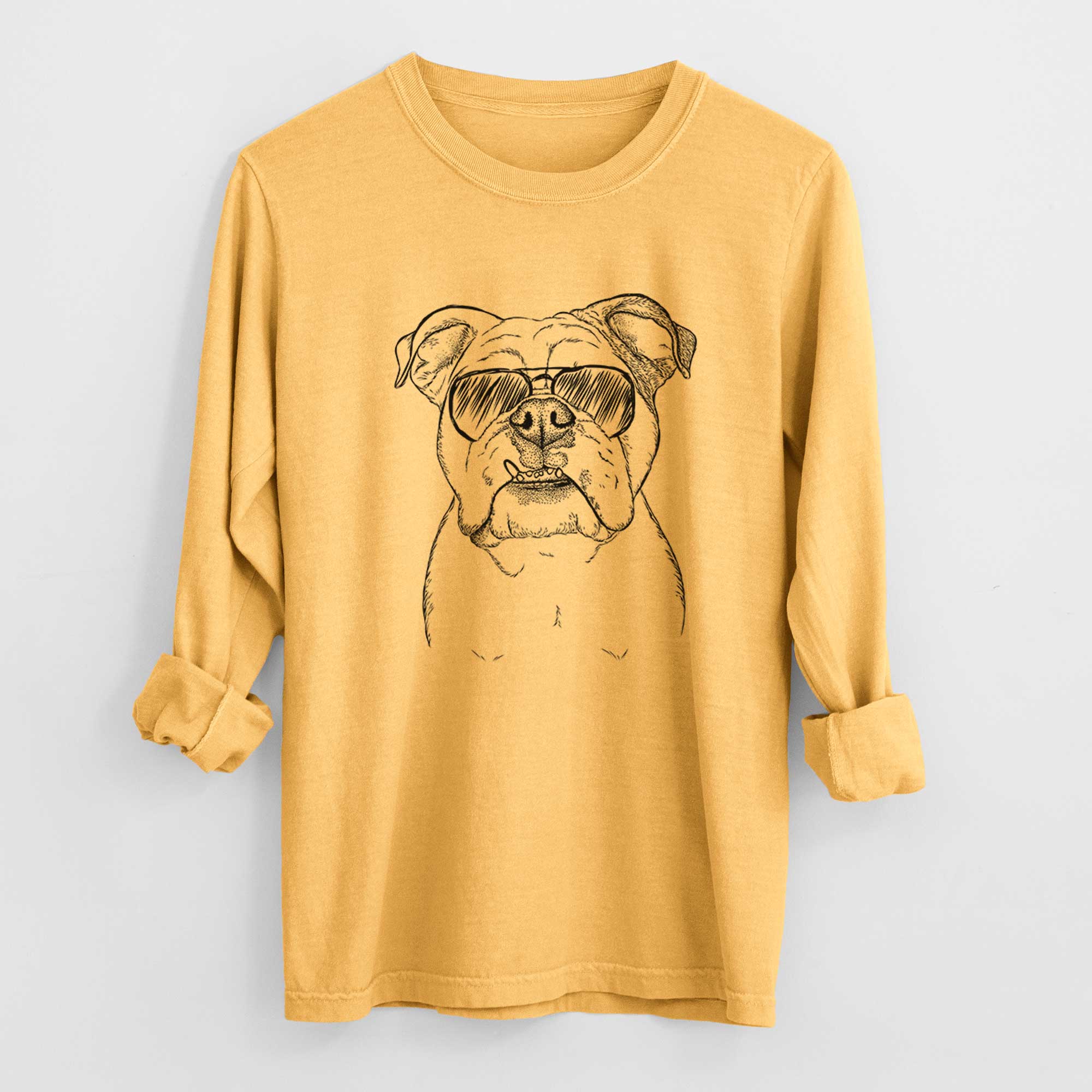 Aviator Dazy the English Bulldog - Men's Heavyweight 100% Cotton Long Sleeve