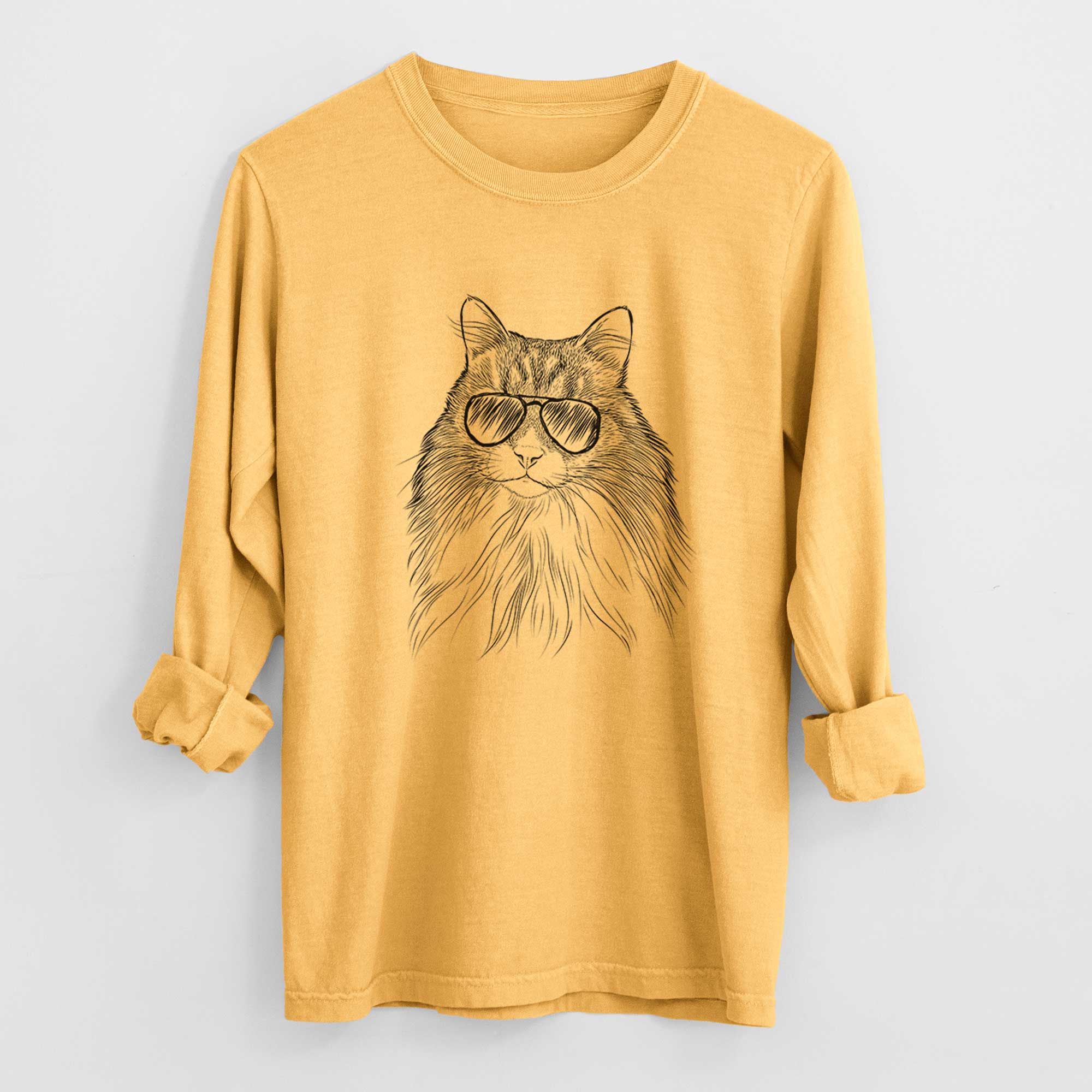 Aviator Maks the Siberian Cat - Men's Heavyweight 100% Cotton Long Sleeve