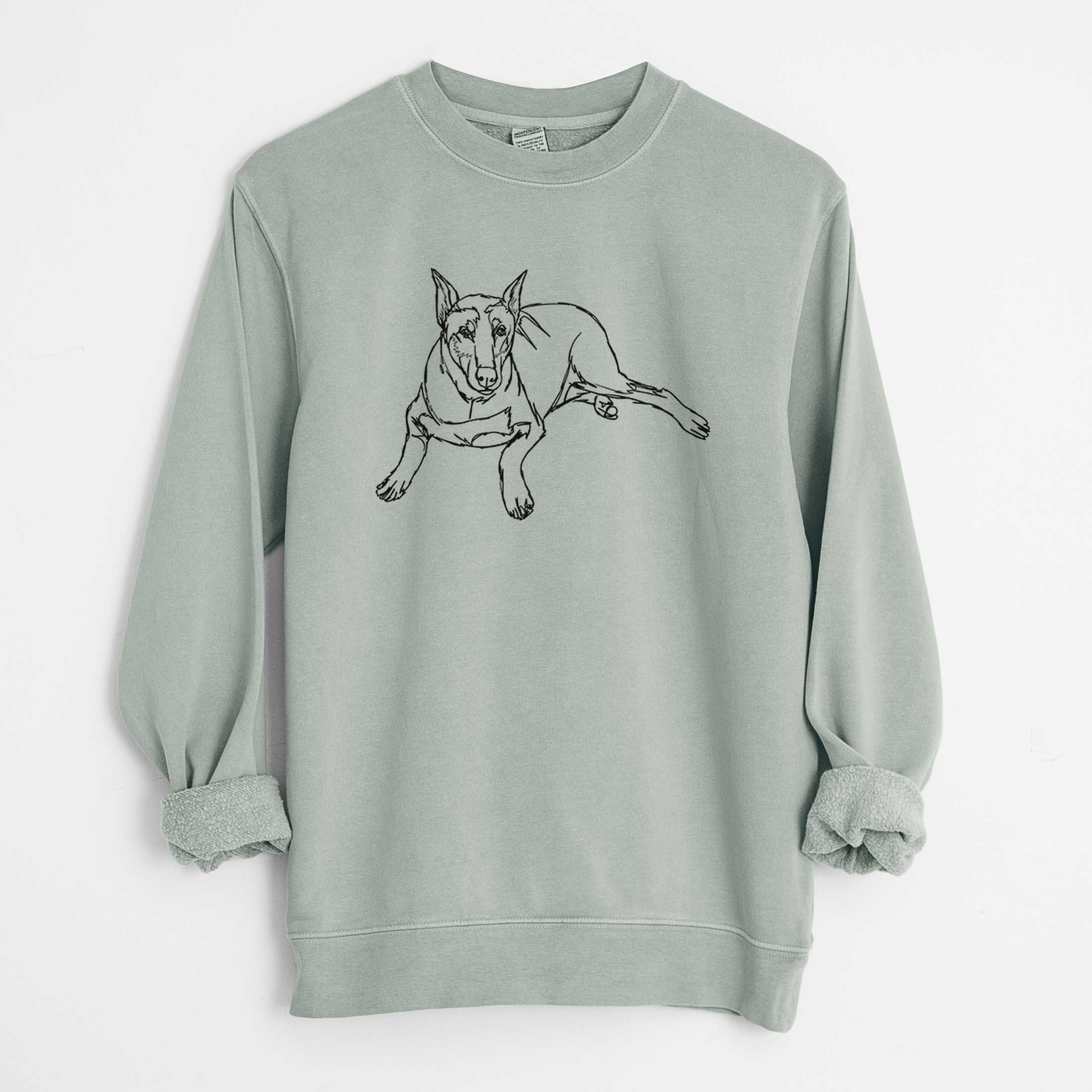 Doodled Ginger the Doberman Pinscher - Unisex Pigment Dyed Crew Sweatshirt