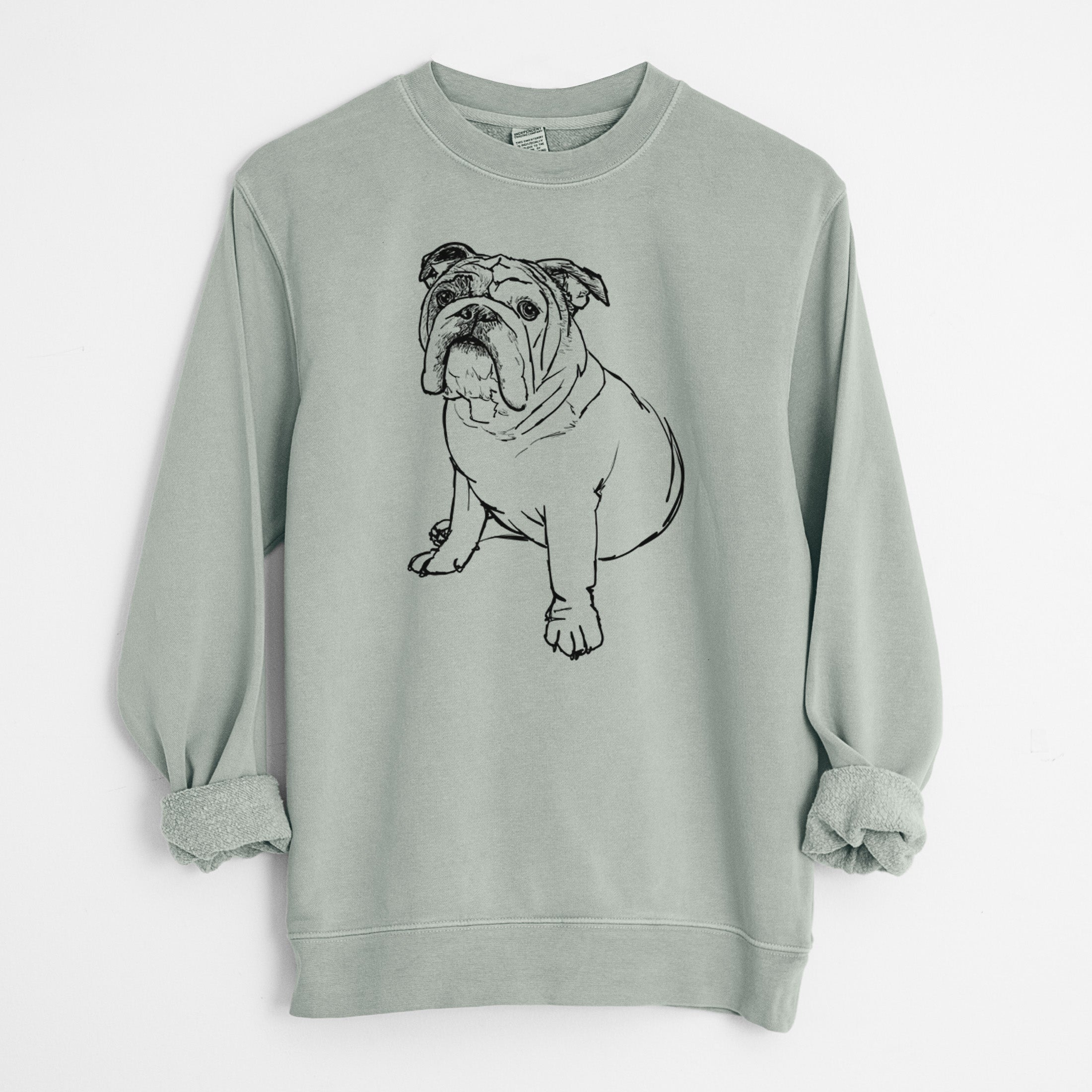 Doodled Yogi the English Bulldog - Unisex Pigment Dyed Crew Sweatshirt
