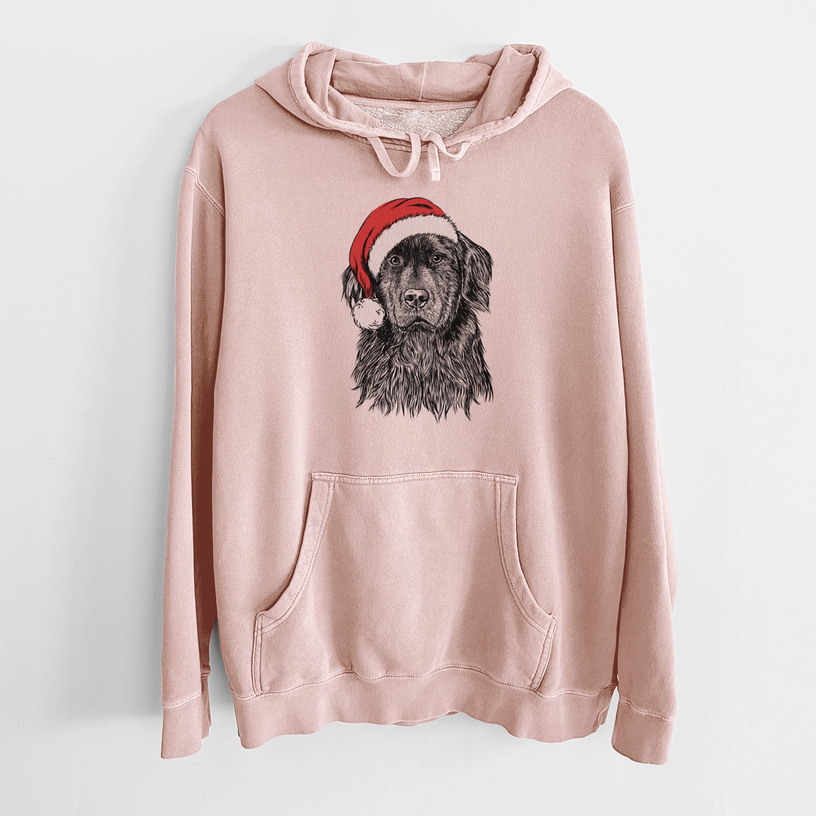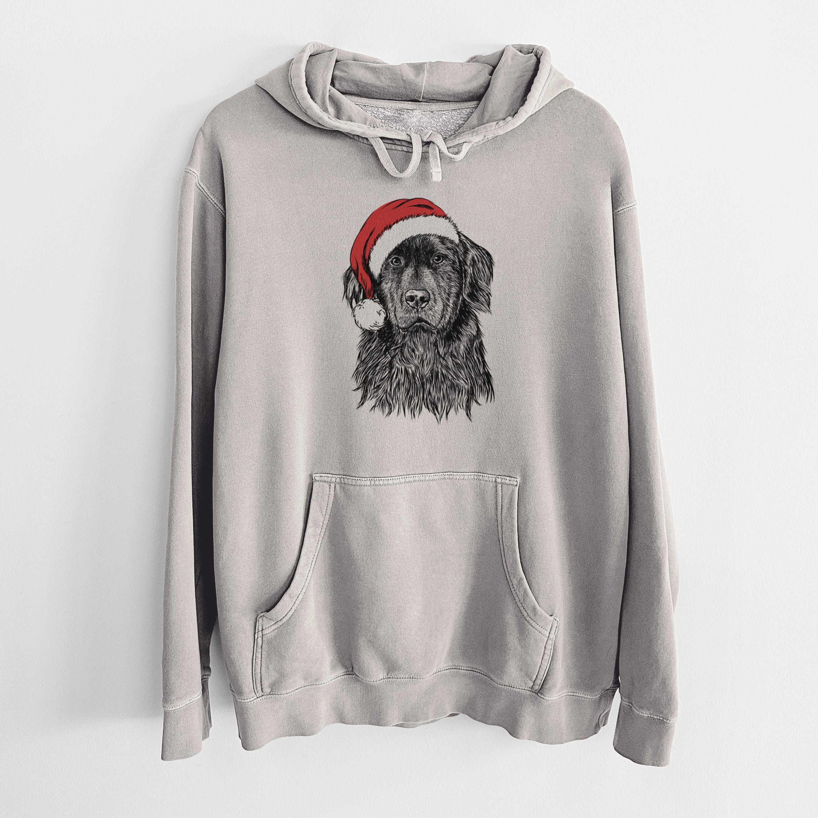 Santa Hat Jinx the Newfoundland - Unisex Pigment Dyed Hoodie