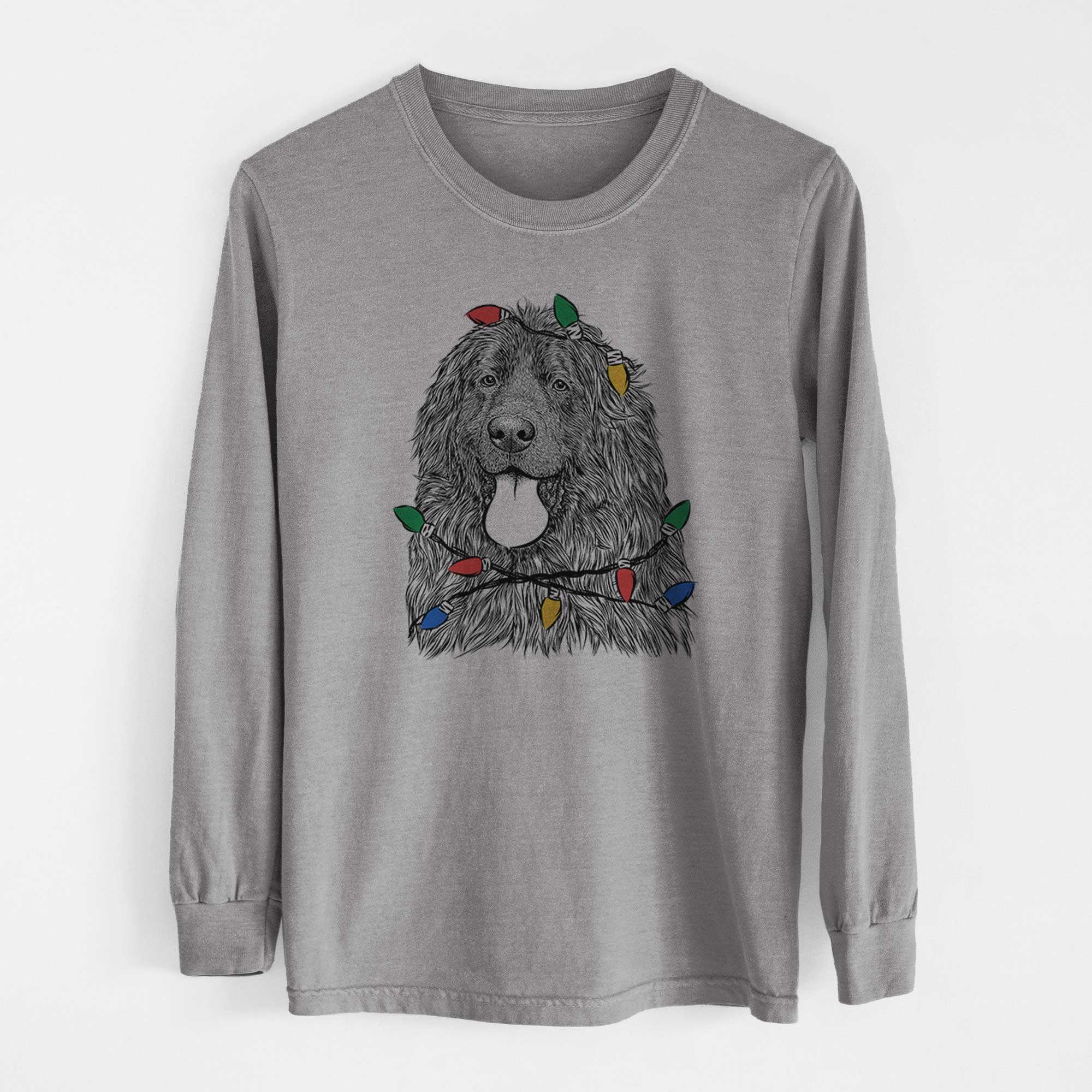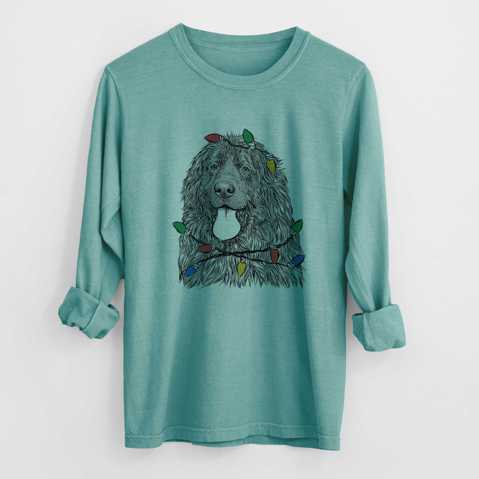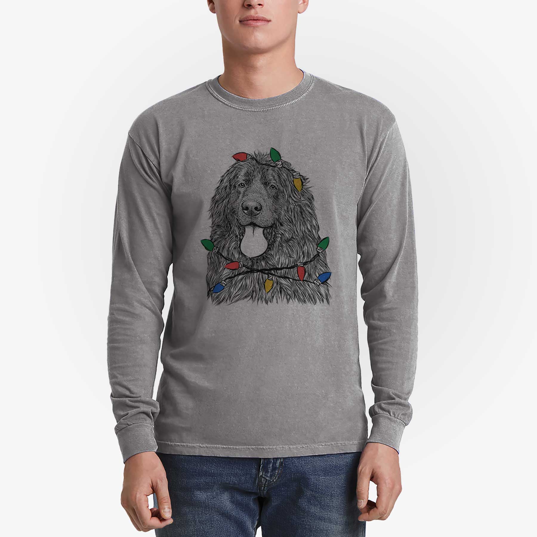 Christmas Lights Neptune the Newfoundland - Heavyweight 100% Cotton Long Sleeve