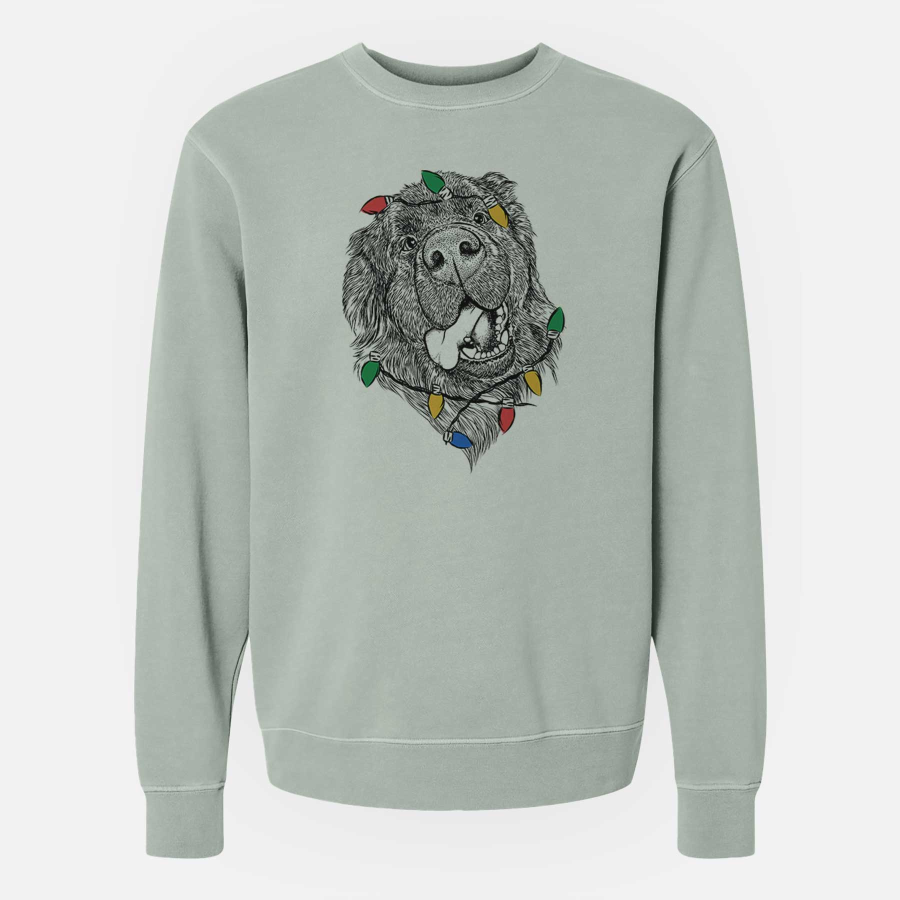Christmas Lights Tuna the Newfoundland - Unisex Pigment Dyed Crew Sweatshirt