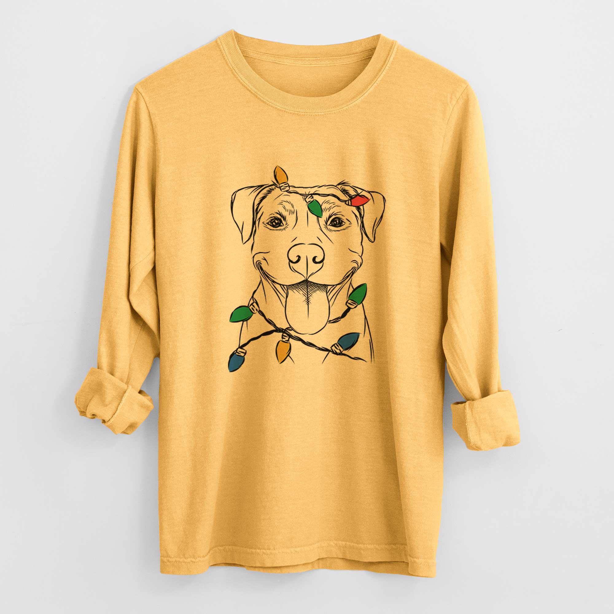 Christmas Lights Parker the Pitbull - Heavyweight 100% Cotton Long Sleeve