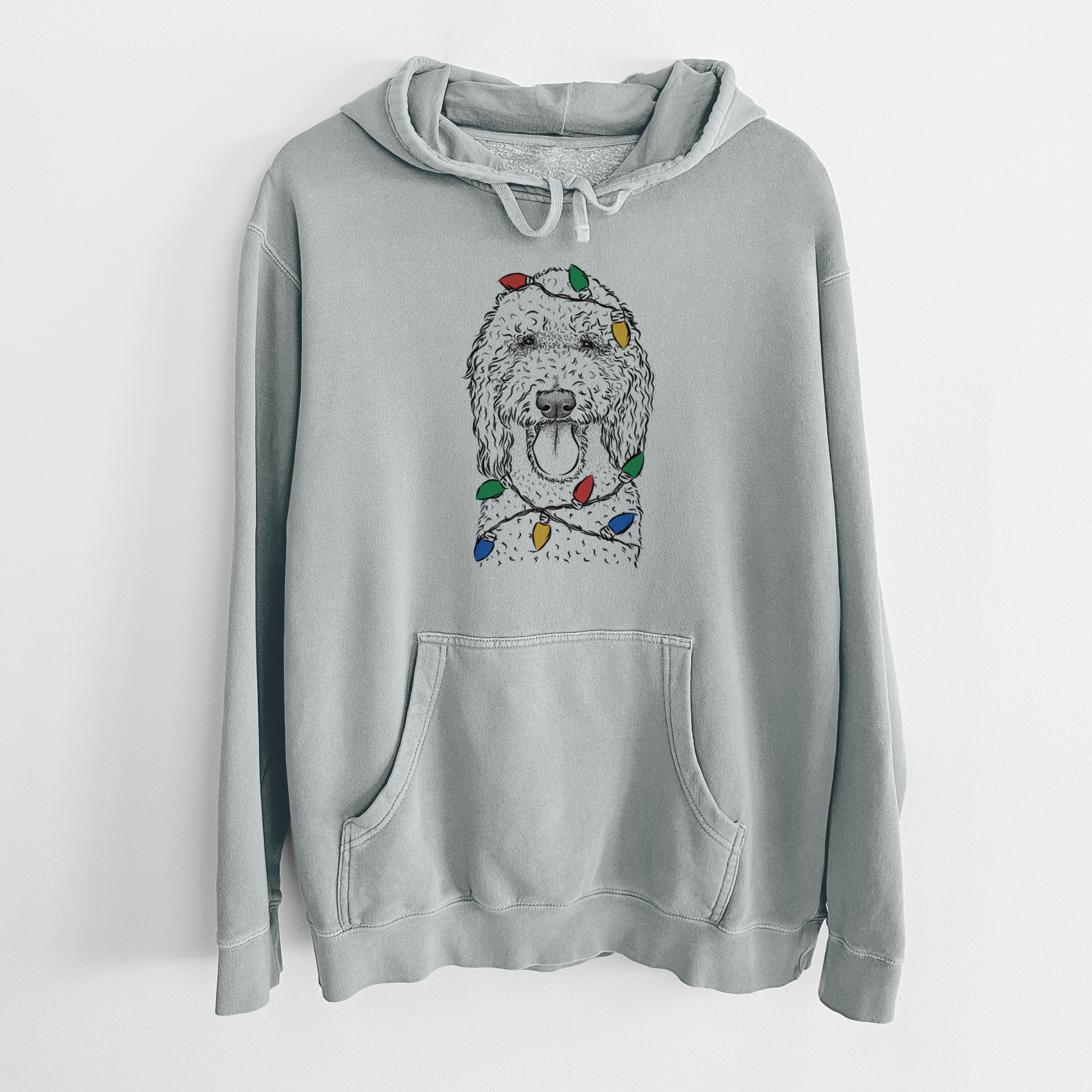 Christmas Lights Pavlov the Goldendoodle - Unisex Pigment Dyed Hoodie