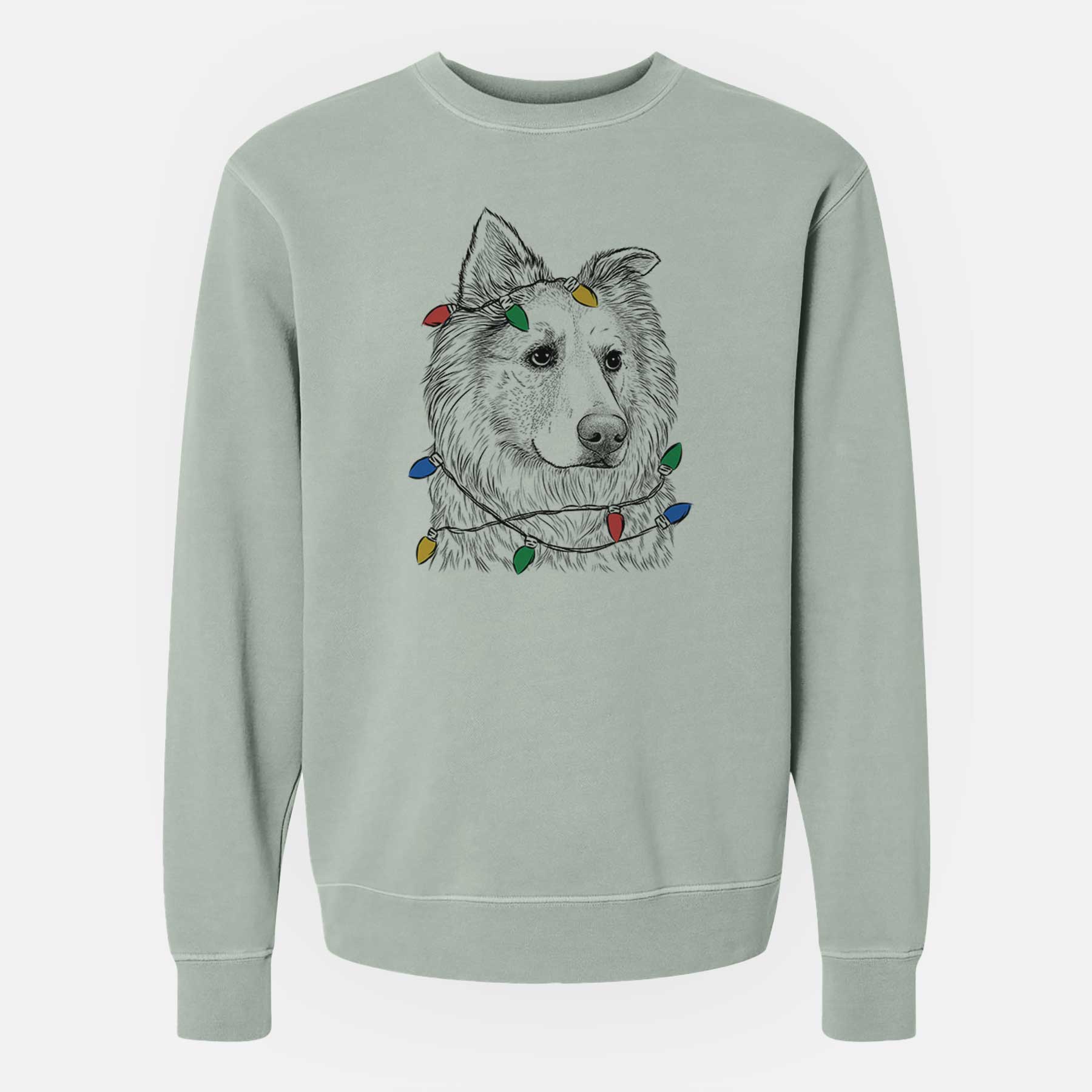 Christmas Lights Penny the Chow Mix - Unisex Pigment Dyed Crew Sweatshirt