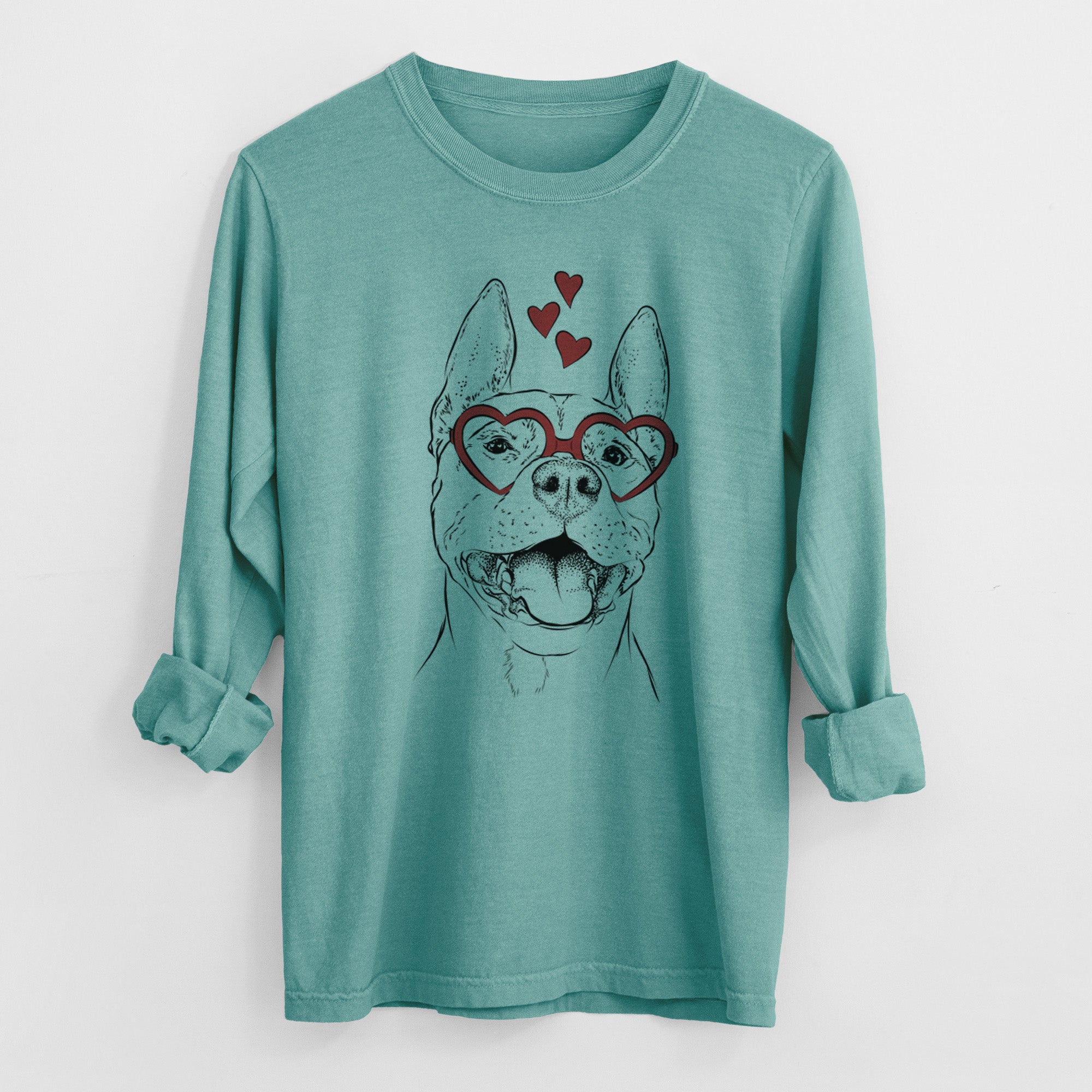 Valentine Wally the Pitbull - Heavyweight 100% Cotton Long Sleeve