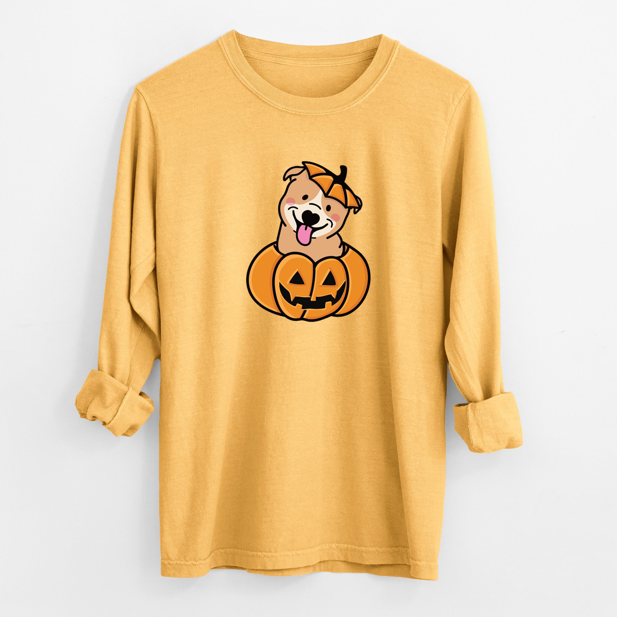 Pumpkin Pup - Pitbull - Heavyweight 100% Cotton Long Sleeve