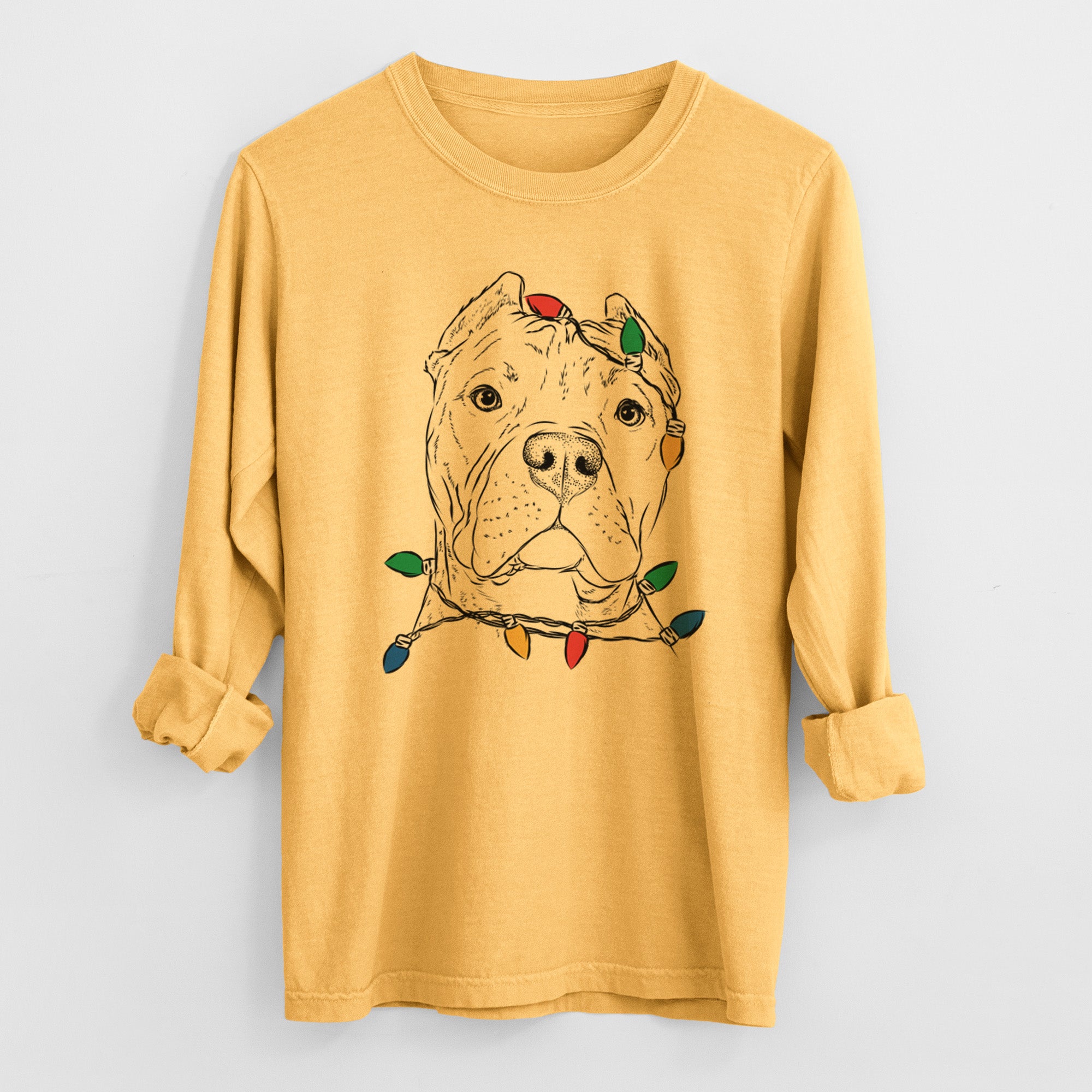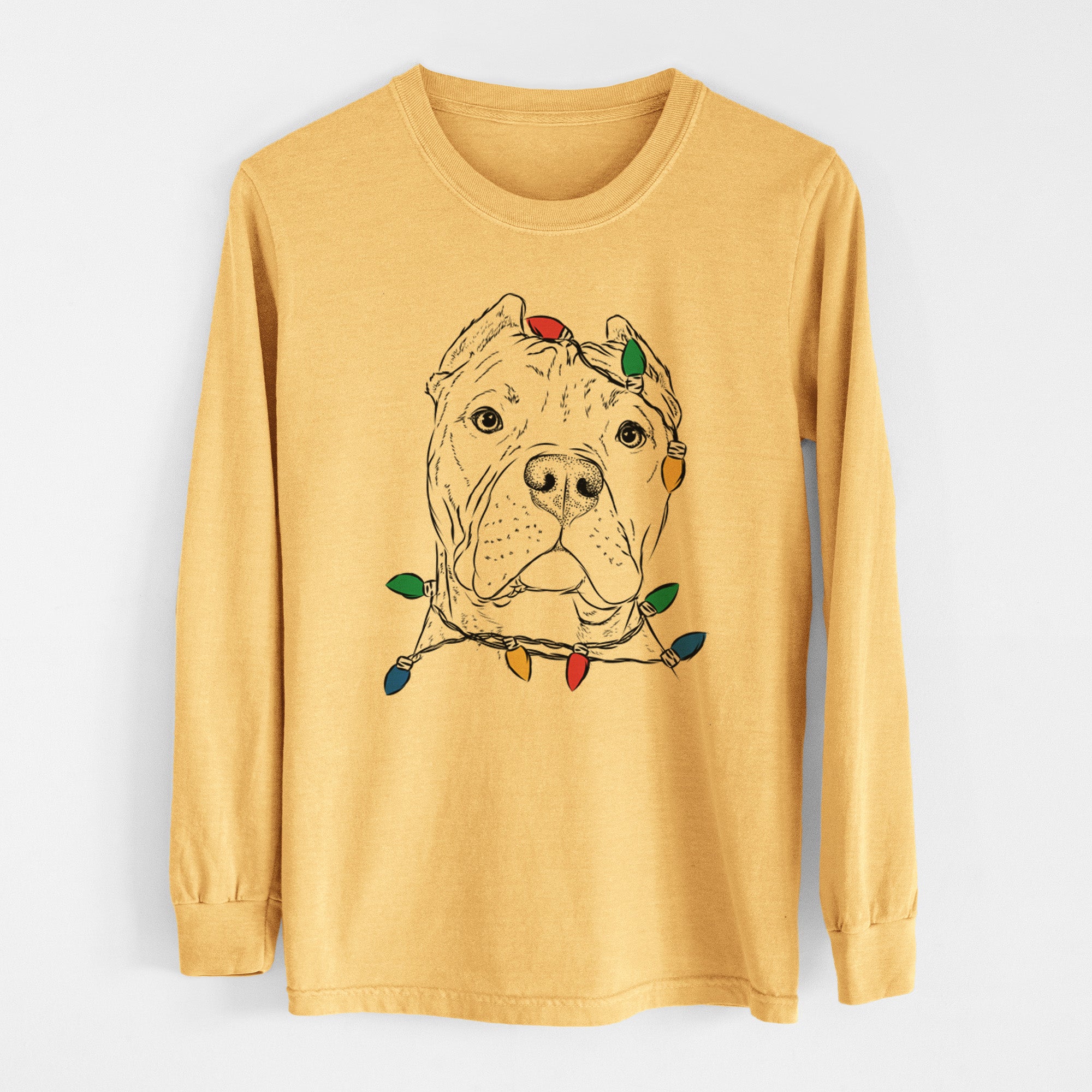 Christmas Lights Bam Bam the Pitbull - Heavyweight 100% Cotton Long Sleeve