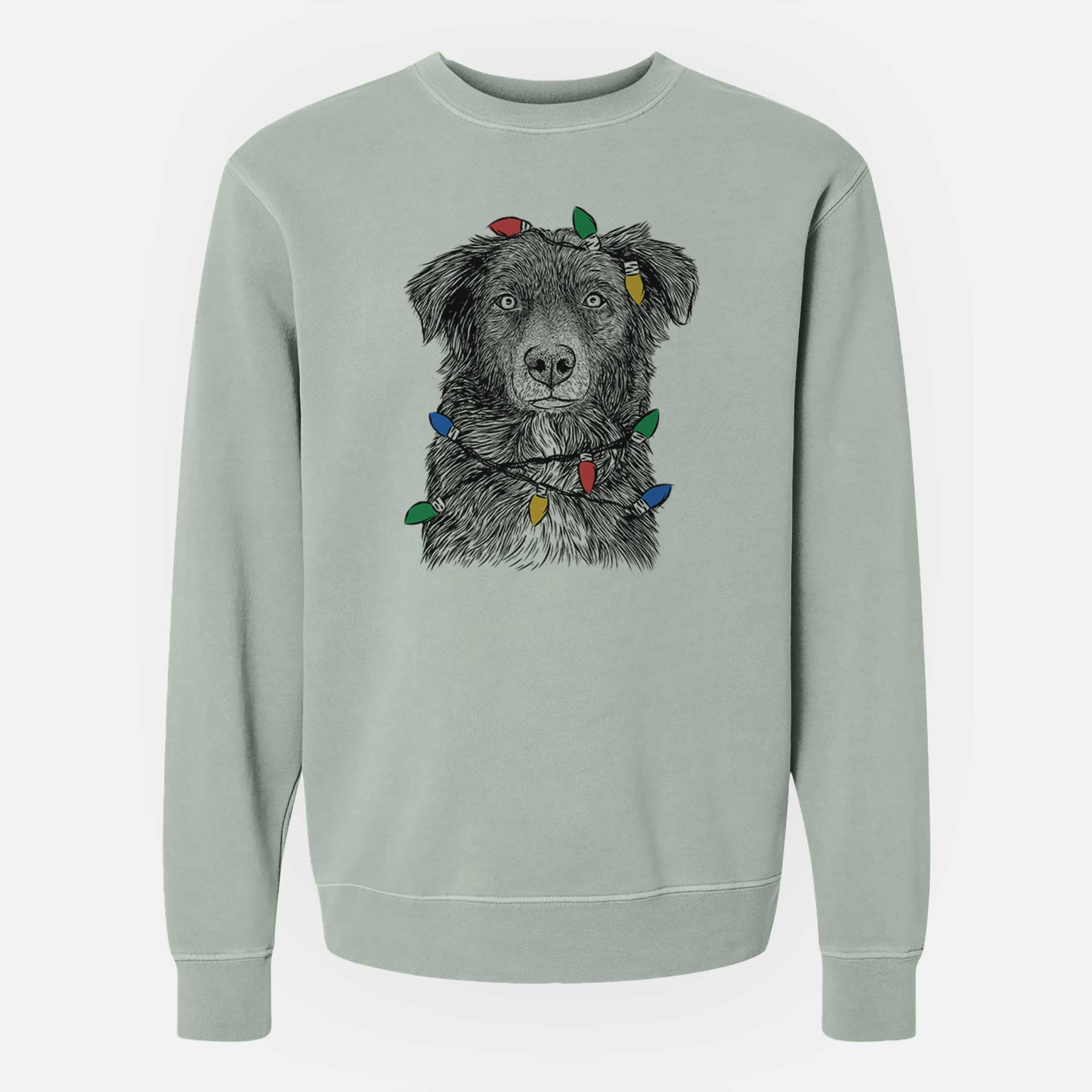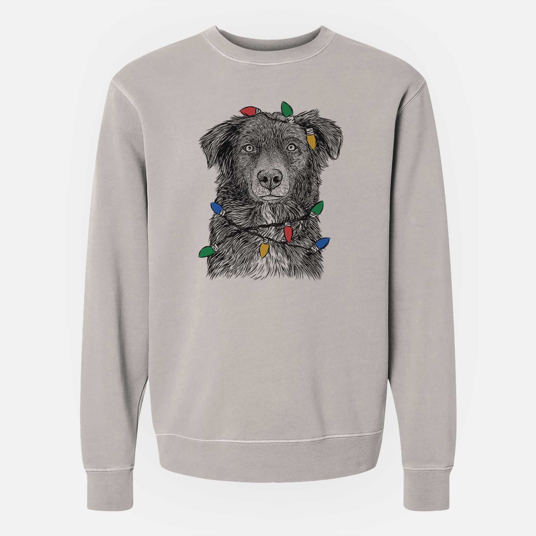 Christmas Lights Pixel the Australian Shepherd - Unisex Pigment Dyed Crew Sweatshirt