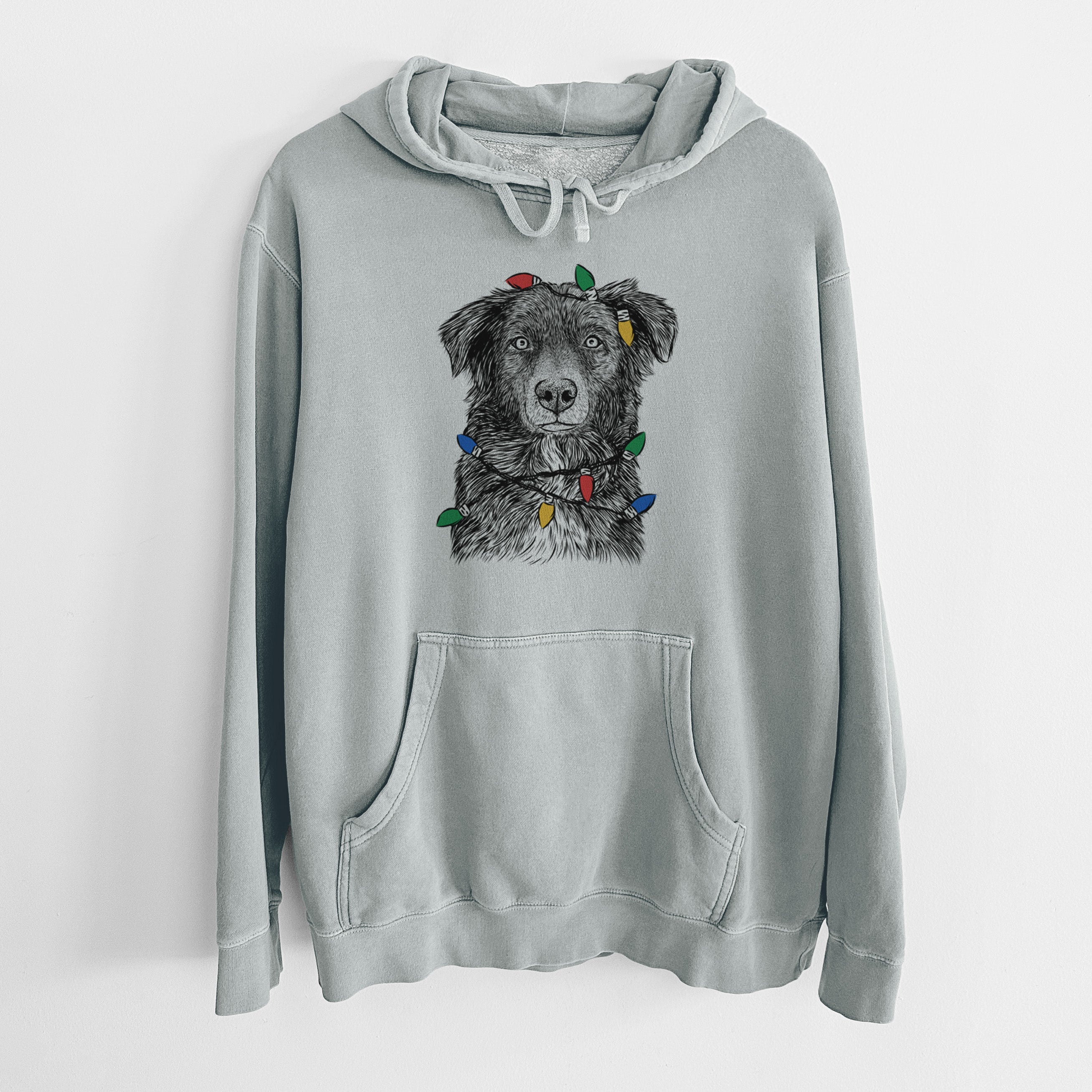 Christmas Lights Pixel the Australian Shepherd - Unisex Pigment Dyed Hoodie