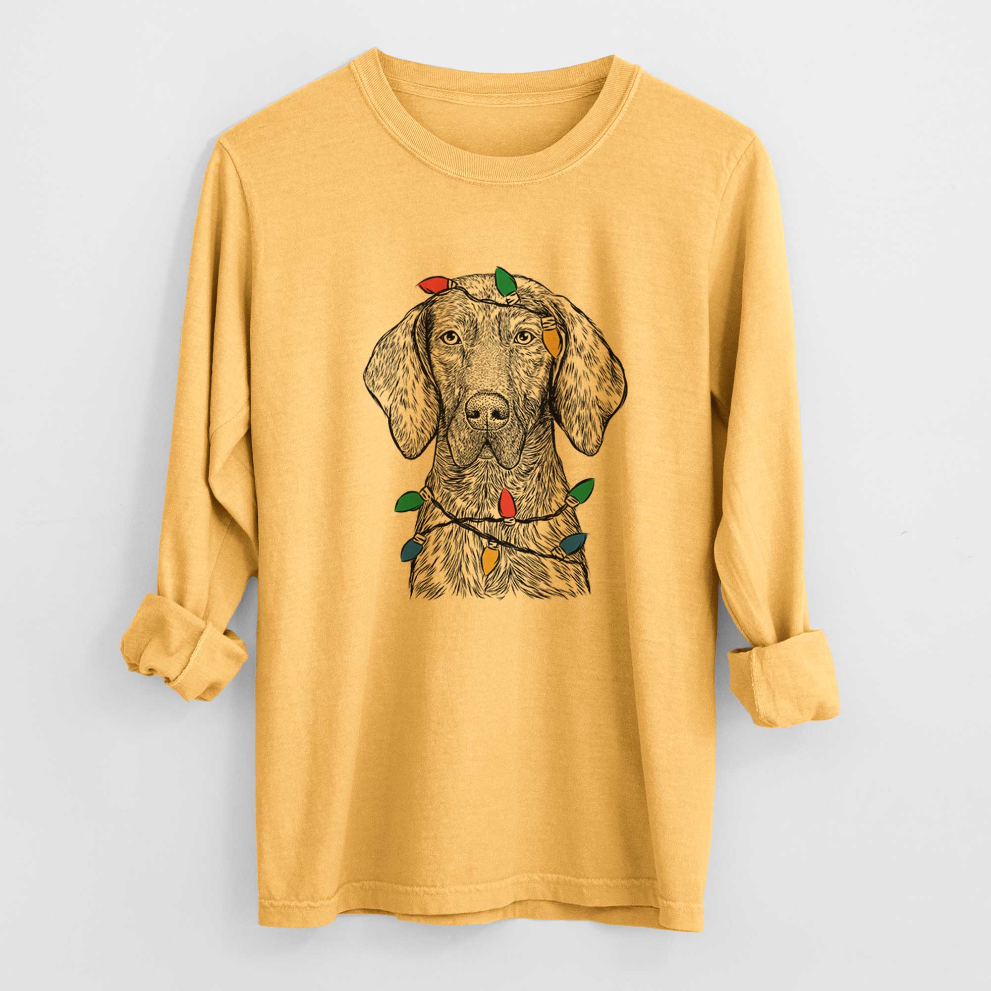 Christmas Lights Boone the Plott Hound - Heavyweight 100% Cotton Long Sleeve