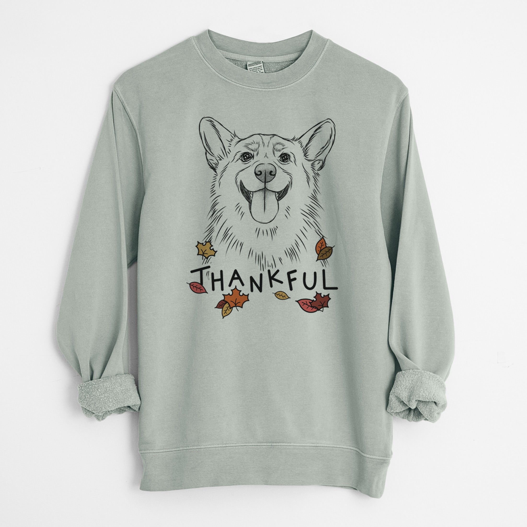 Thankful Porter the Pembroke Welsh Corgi - Unisex Pigment Dyed Crew Sweatshirt