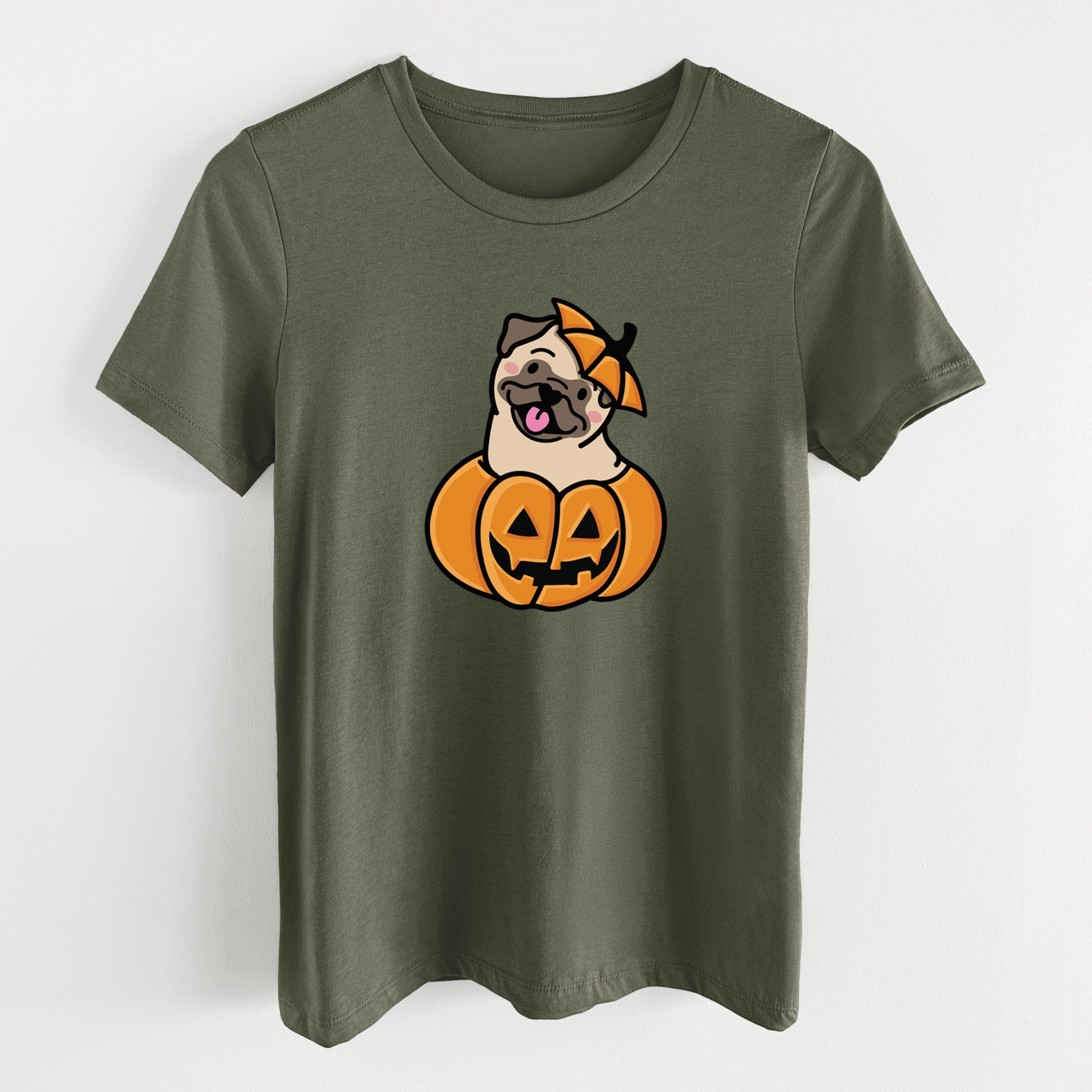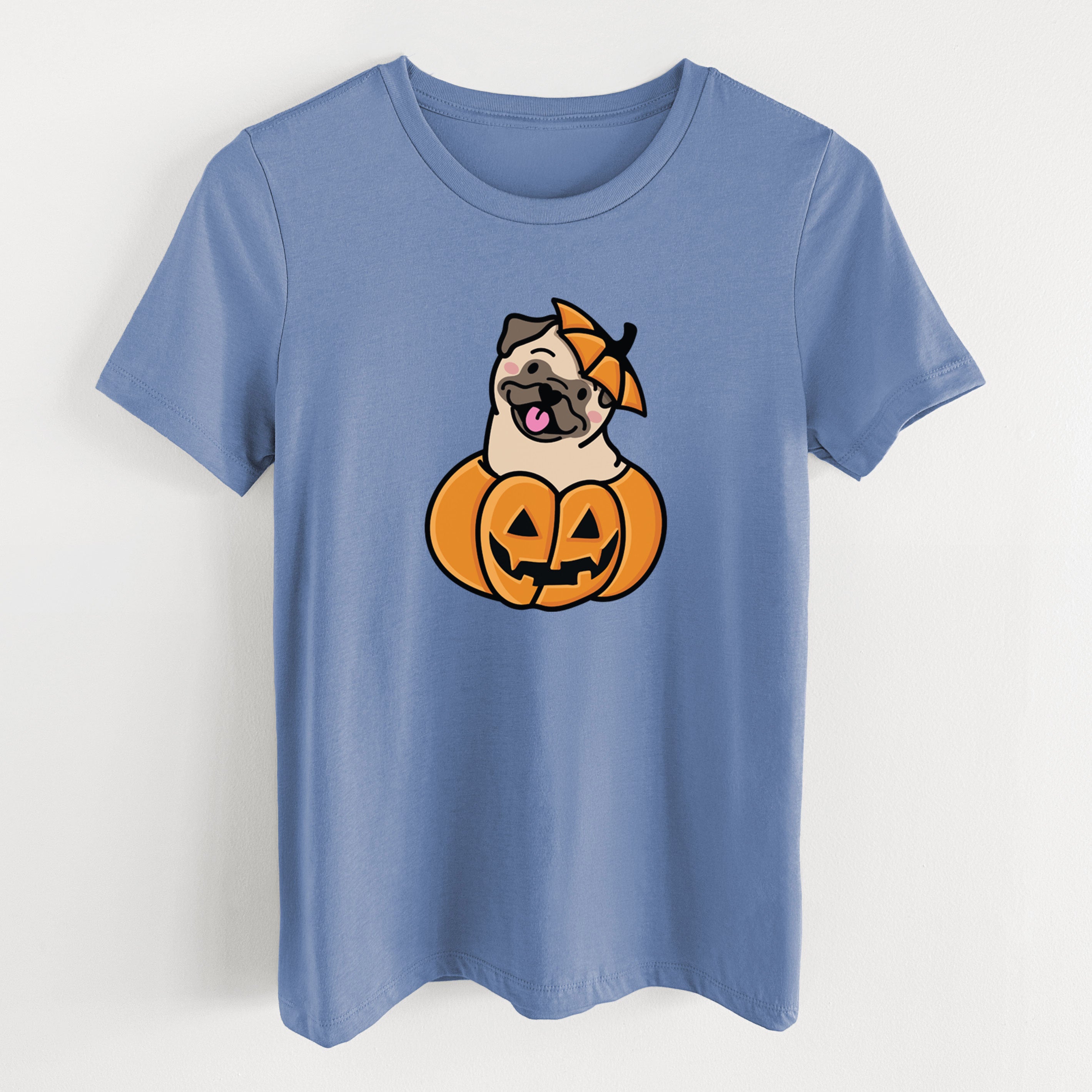 Pumpkin Pup - Pug - Women's Lightweight Relaxed Fit 100% Cotton Crewneck