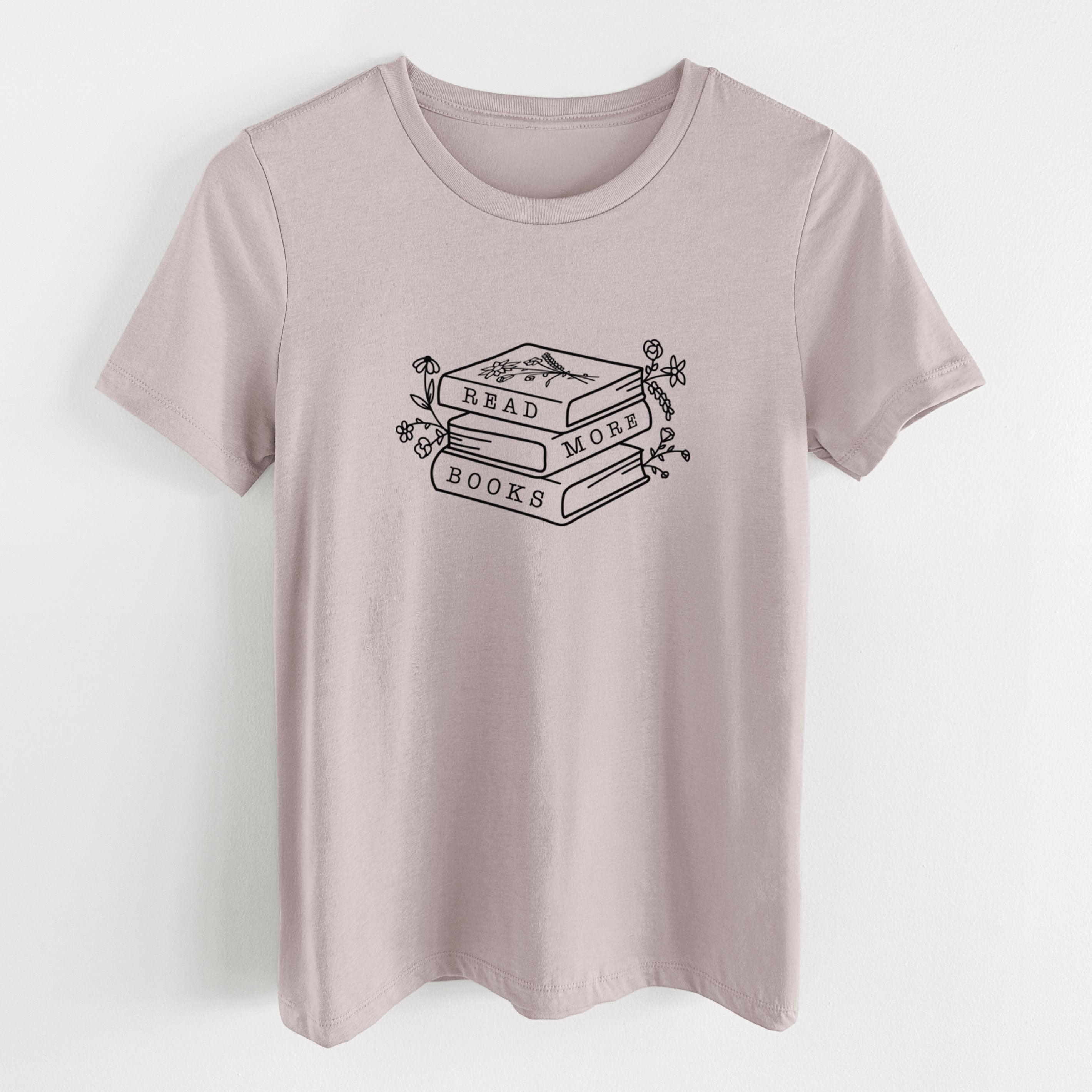 Read More Books - Floral Book Stack - Women's Lightweight Relaxed Fit 100% Cotton Crewneck