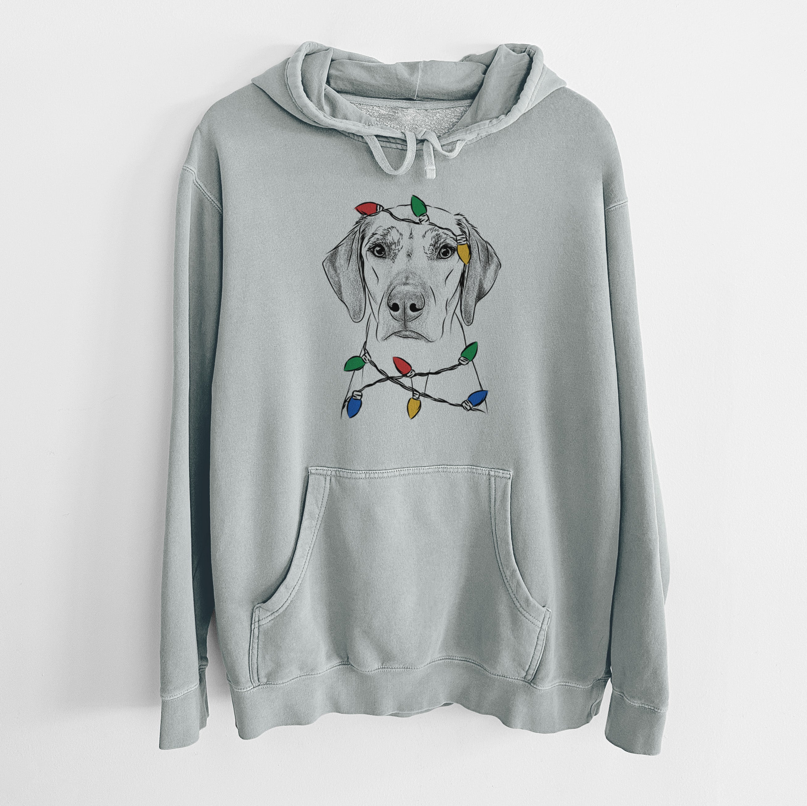 Christmas Lights Jenga the Rhodesian Ridgeback - Unisex Pigment Dyed Hoodie