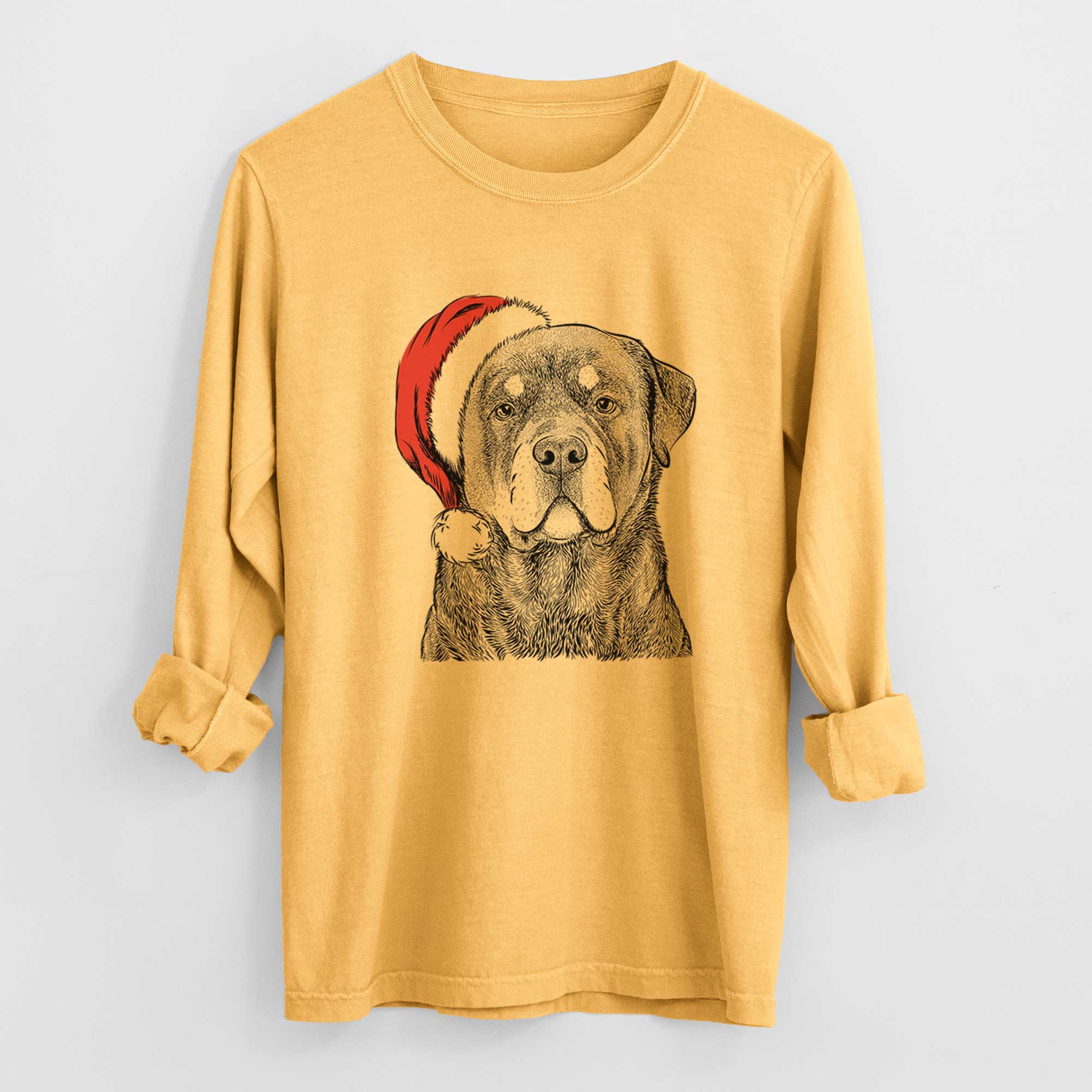 Santa Sarge the Rottweiler - Men's Heavyweight 100% Cotton Long Sleeve
