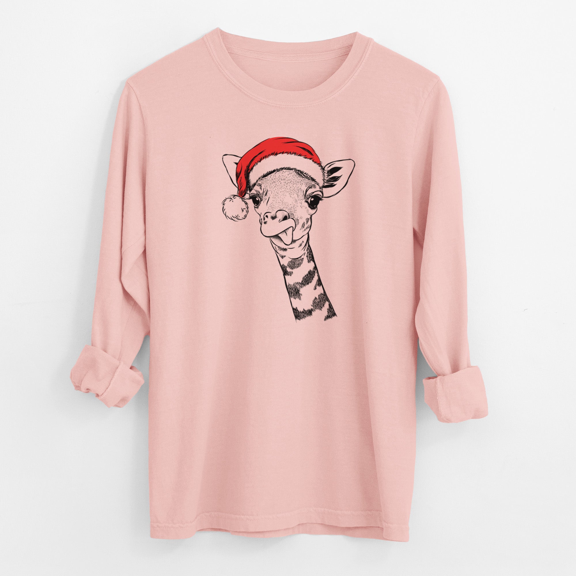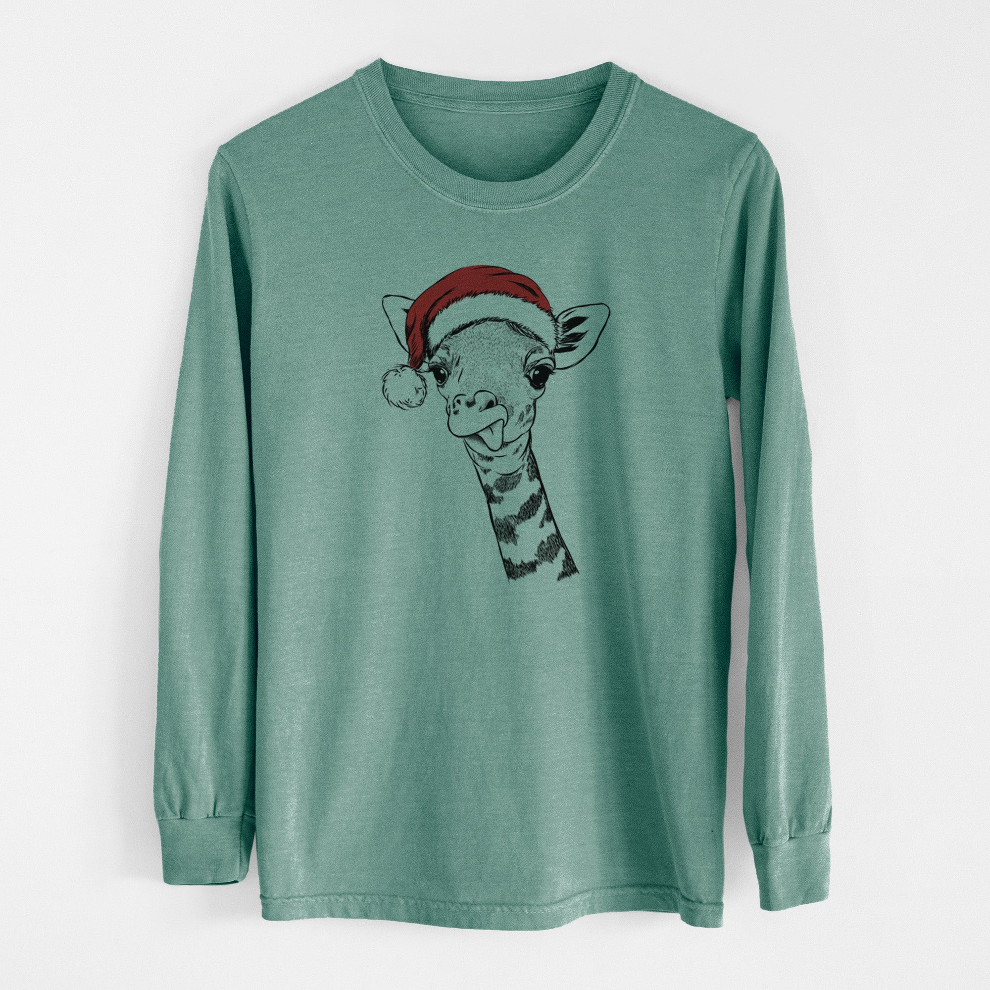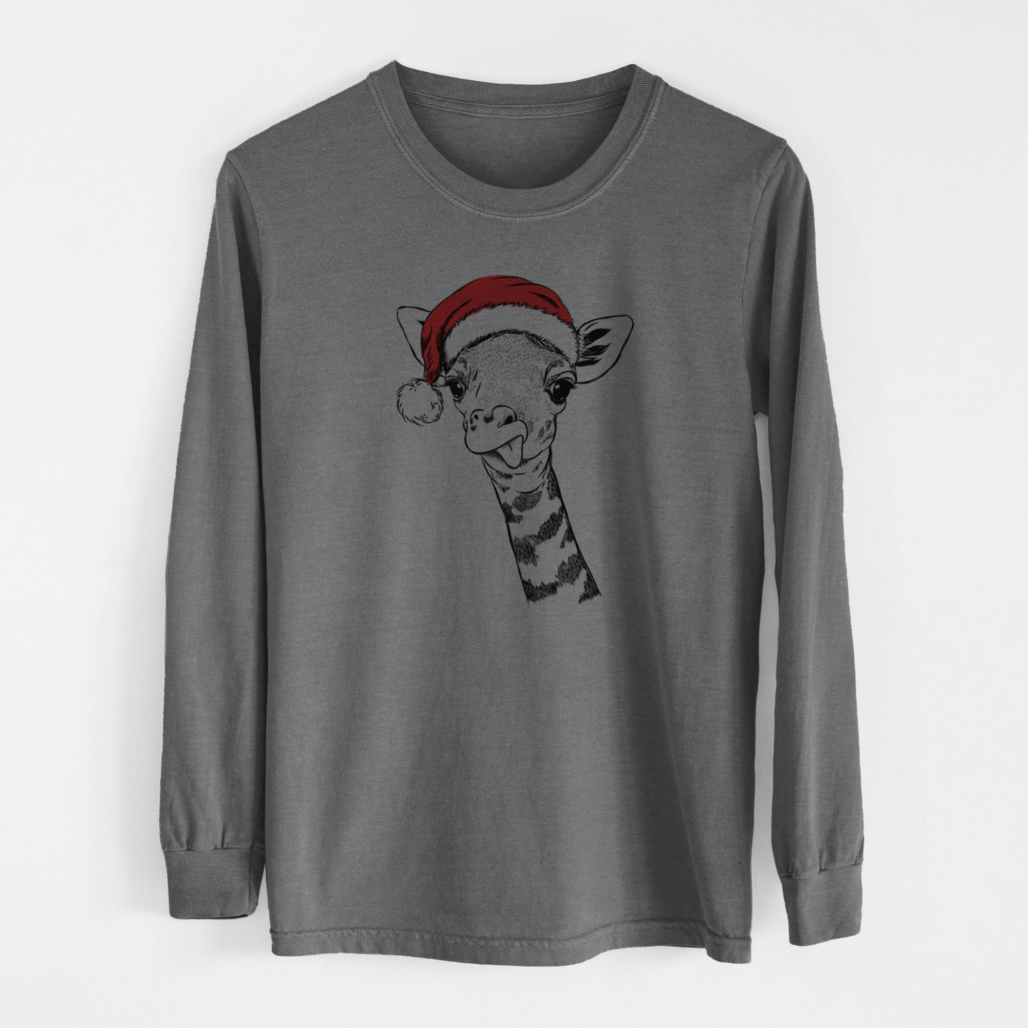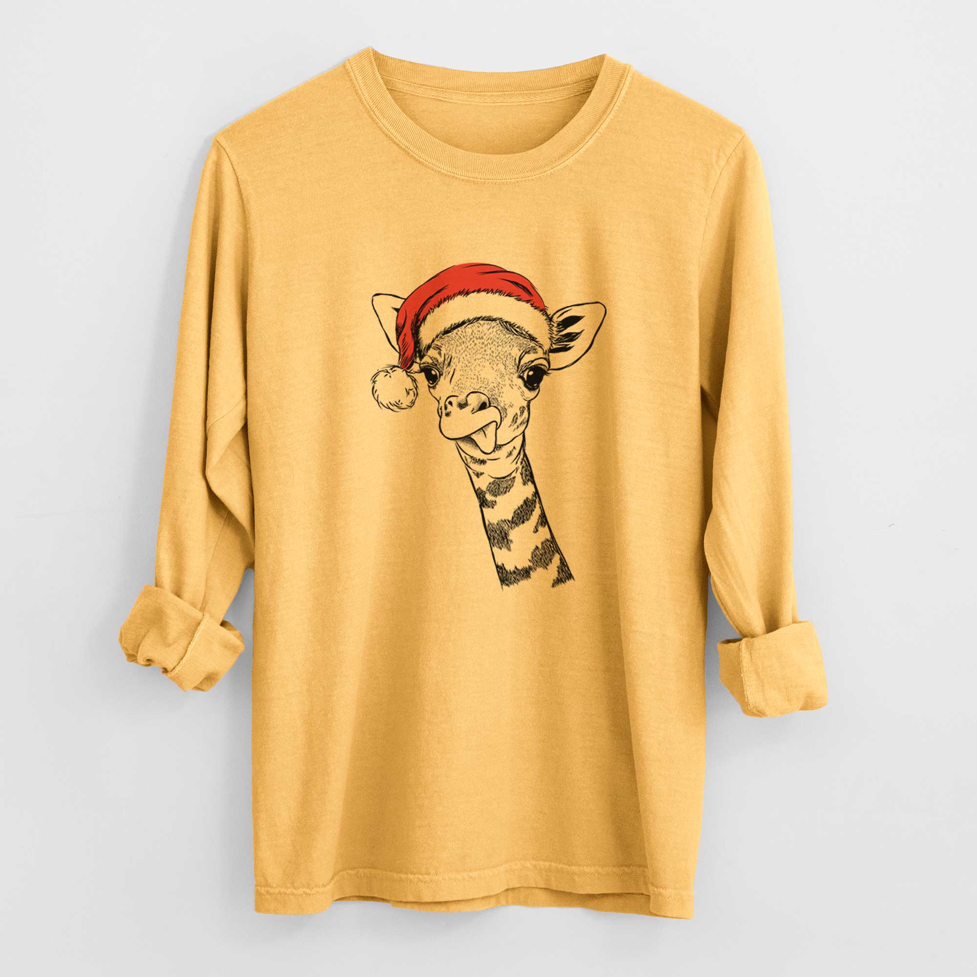 Santa Mel the Baby Giraffe - Men's Heavyweight 100% Cotton Long Sleeve