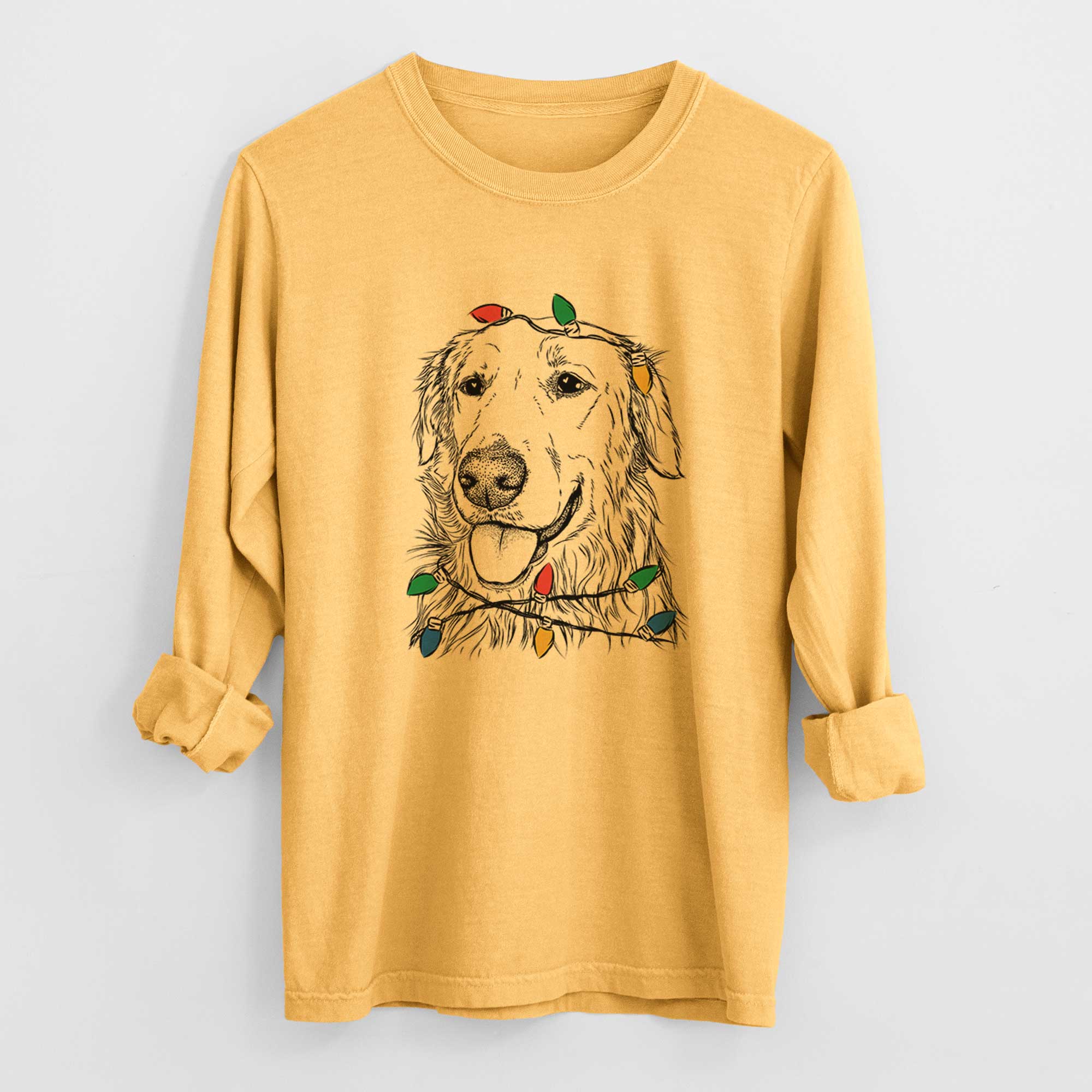 Christmas Lights Hopper the Golden Retriever - Heavyweight 100% Cotton Long Sleeve
