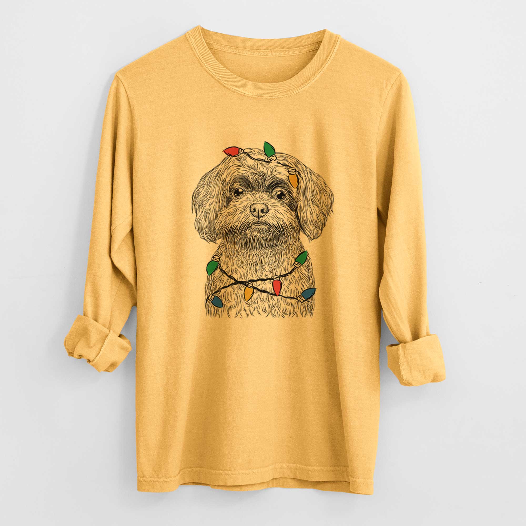 Christmas Lights Stella the Shih Tzu Mix - Heavyweight 100% Cotton Long Sleeve