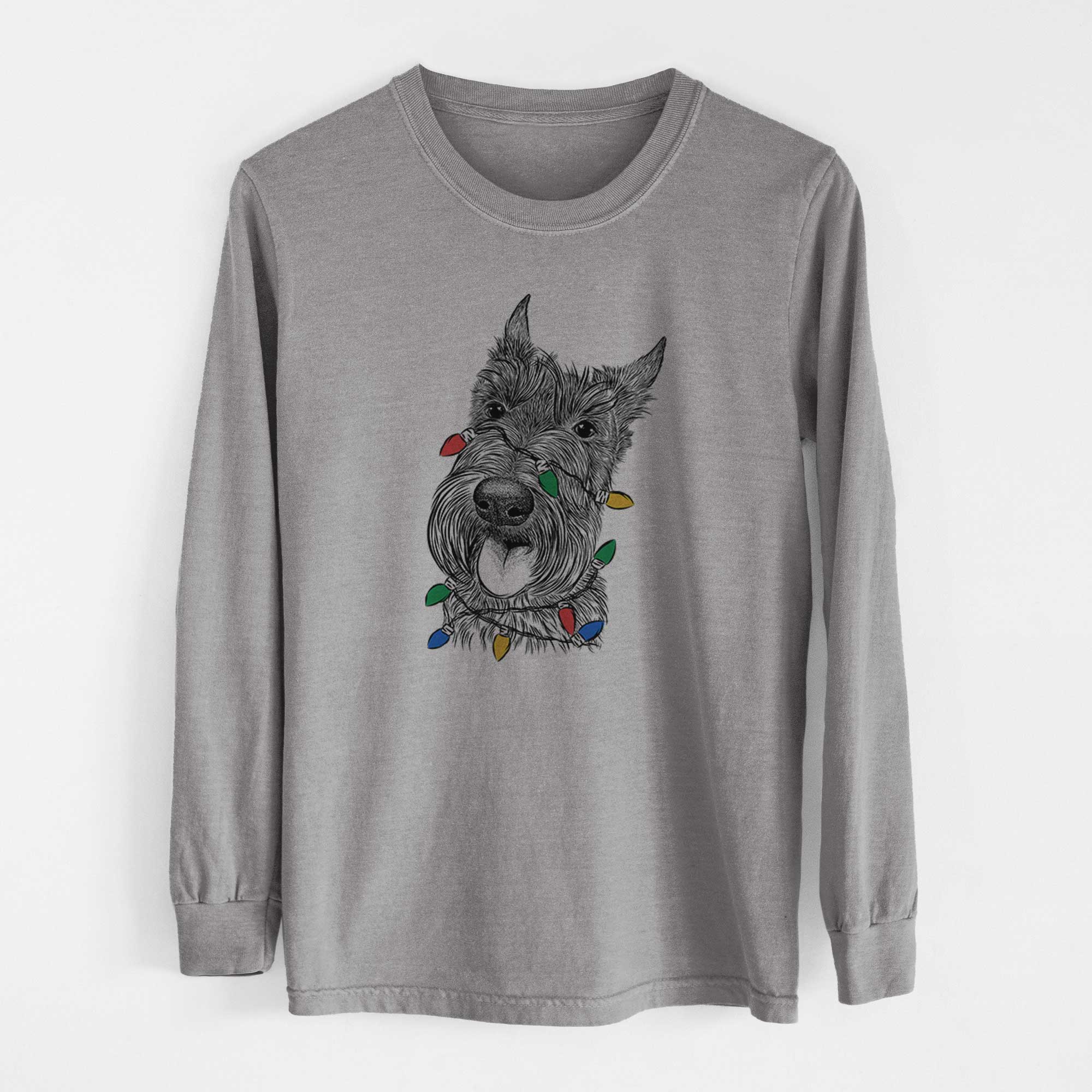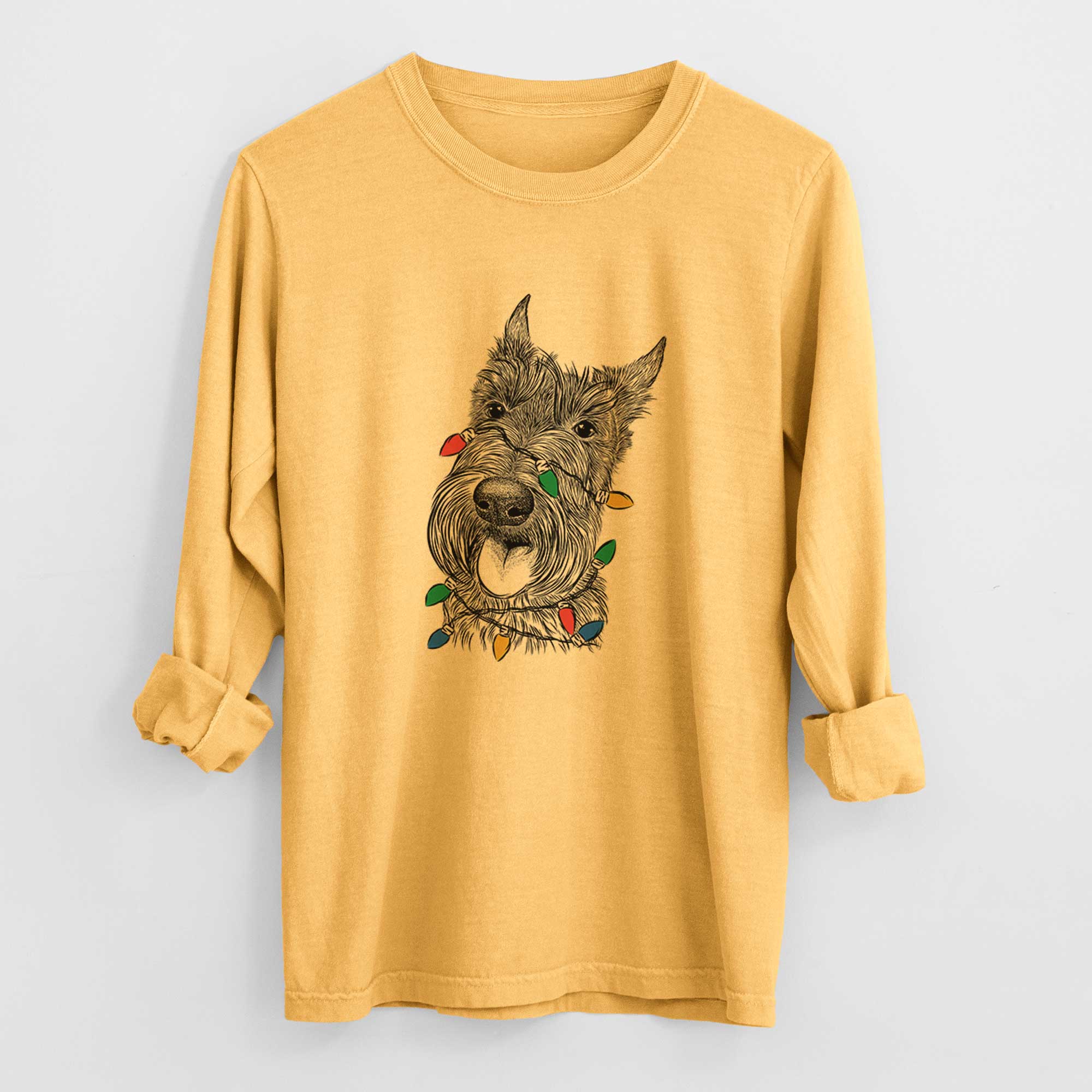 Christmas Lights Magnus the Scottish Terrier - Heavyweight 100% Cotton Long Sleeve
