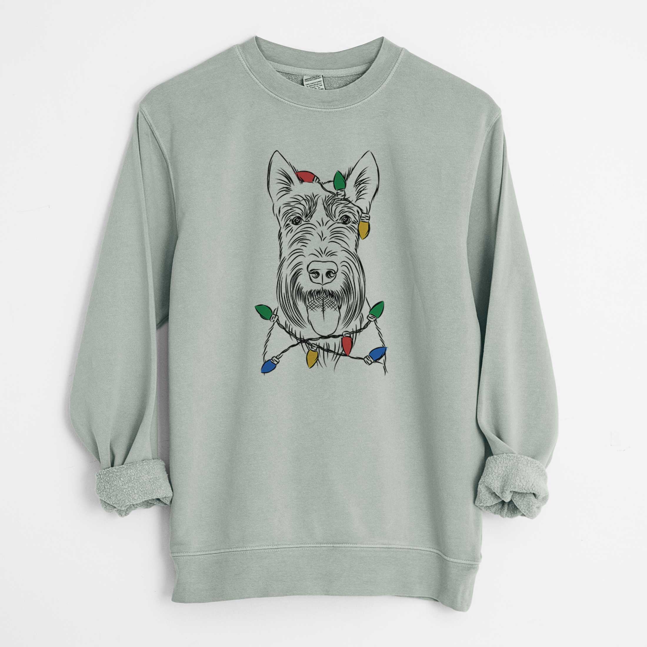 Christmas Lights Oswald the Scottish Terrier - Unisex Pigment Dyed Crew Sweatshirt