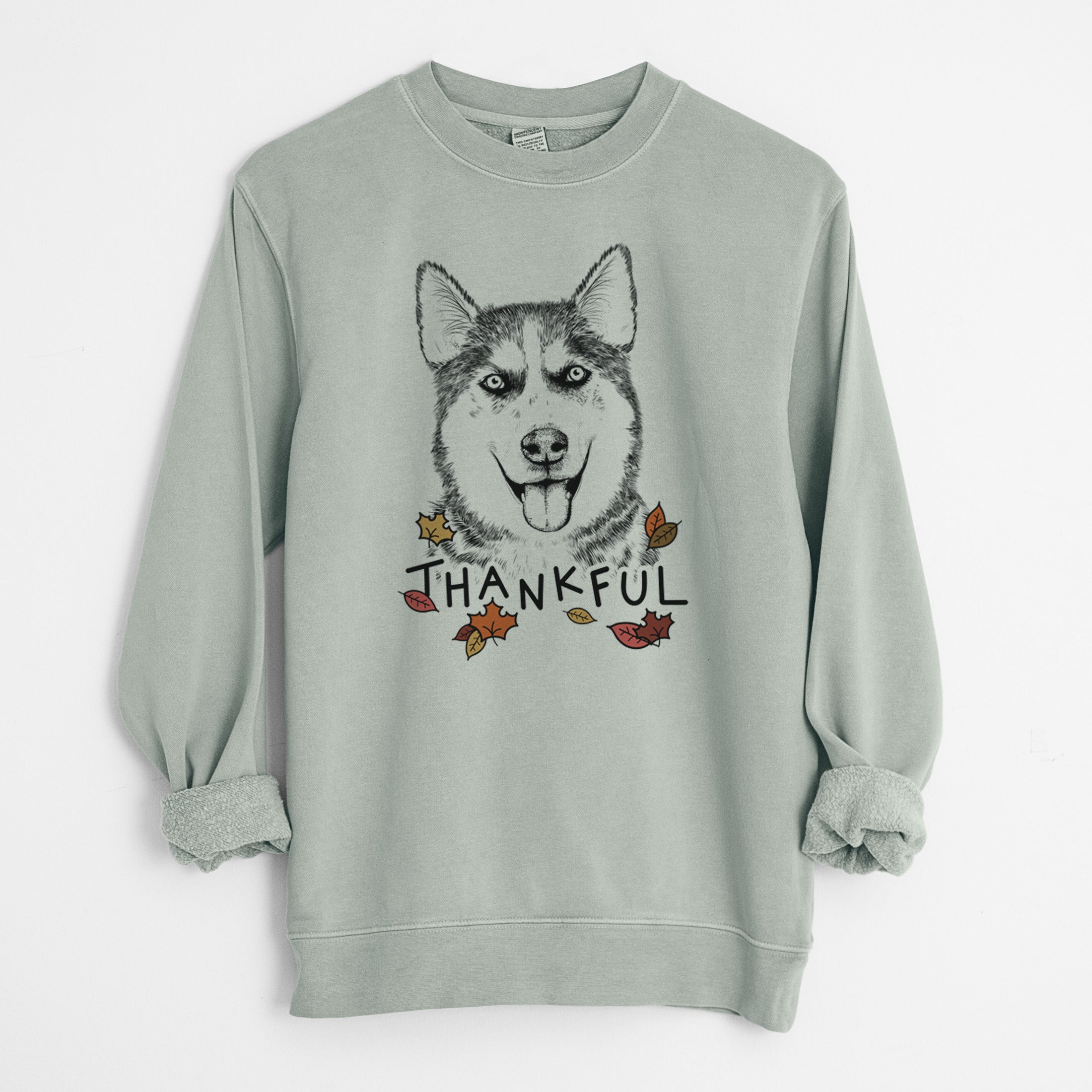 Thankful Sesi the Siberian Husky - Unisex Pigment Dyed Crew Sweatshirt