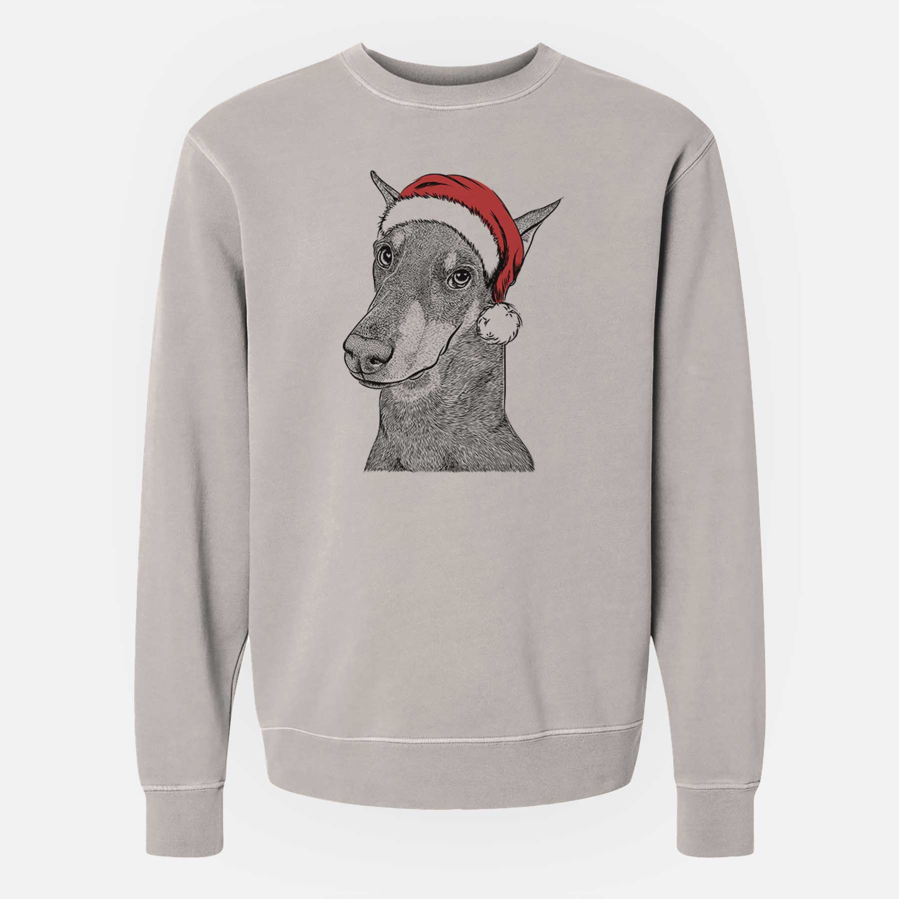 Santa Shelby the Doberman Pinscher - Unisex Pigment Dyed Crew Sweatshirt