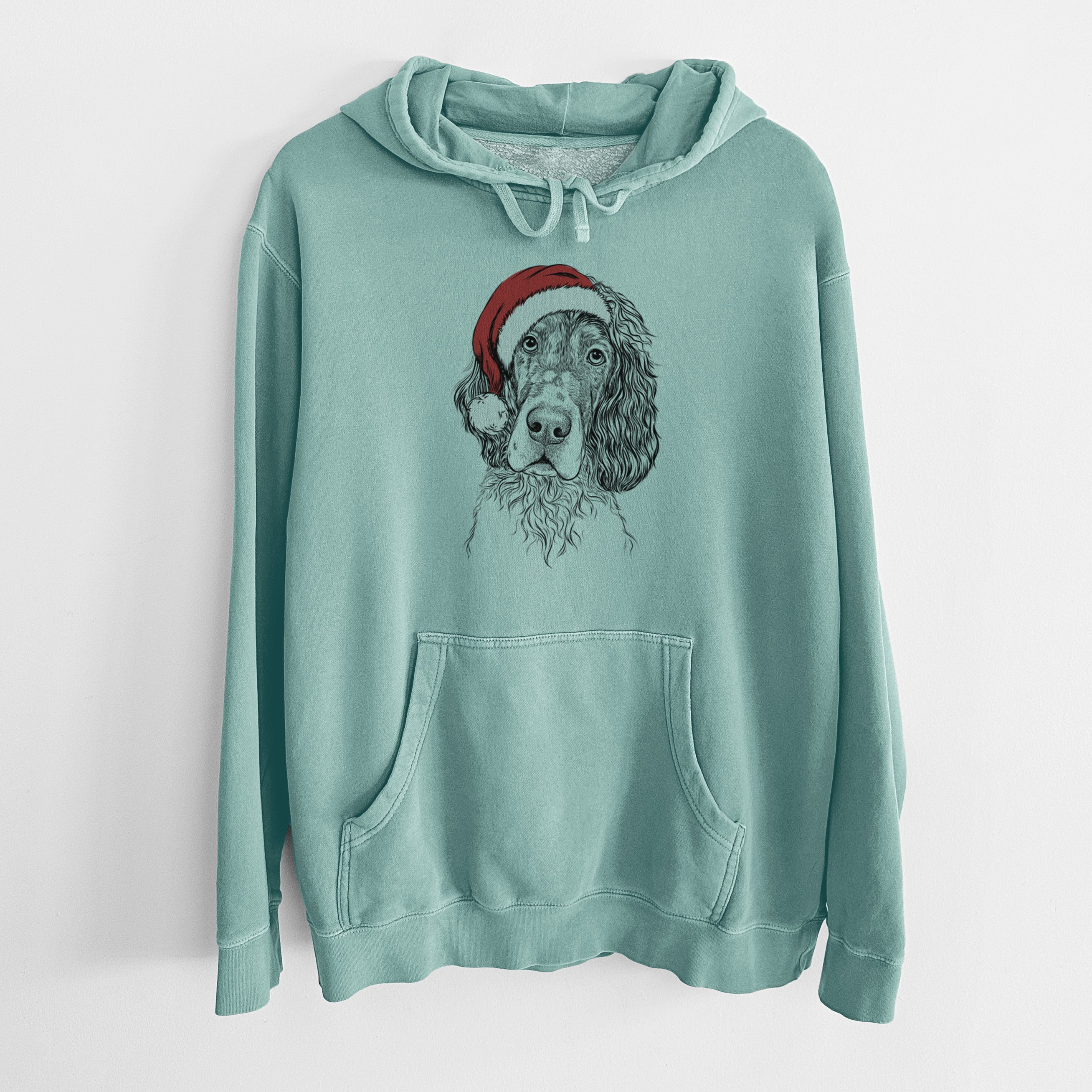Santa Hat Sir Rexford the Blue Belton English Setter - Unisex Pigment Dyed Hoodie