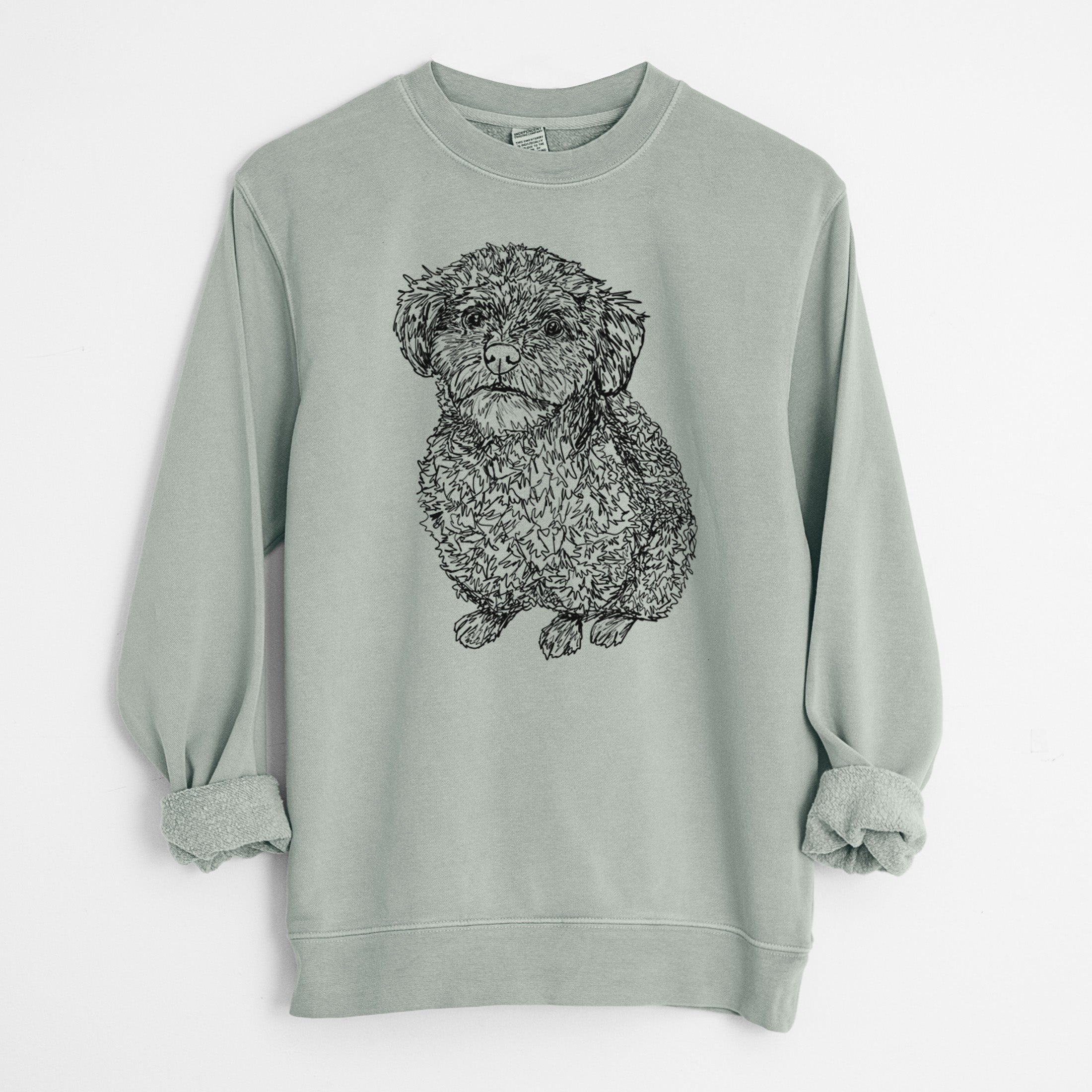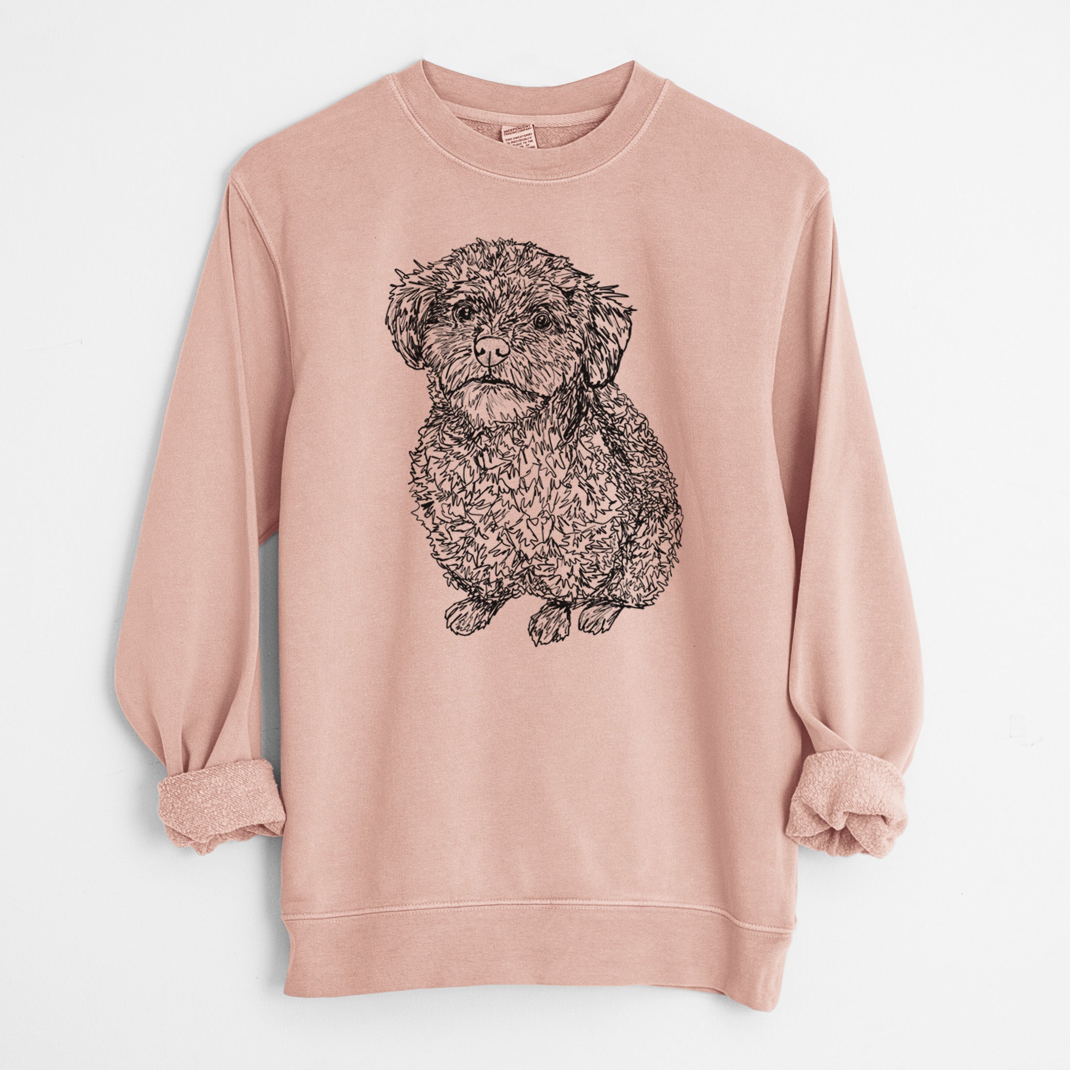 Doodled Boomer the Toy Poodle - Unisex Pigment Dyed Crew Sweatshirt
