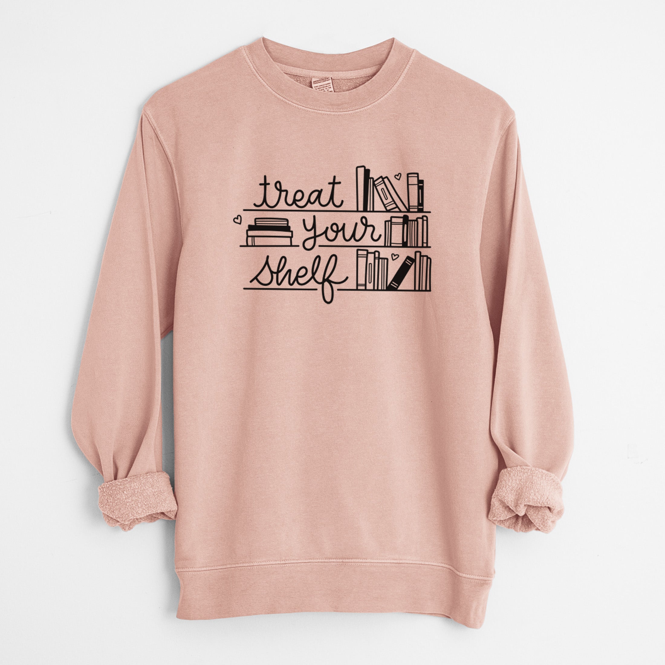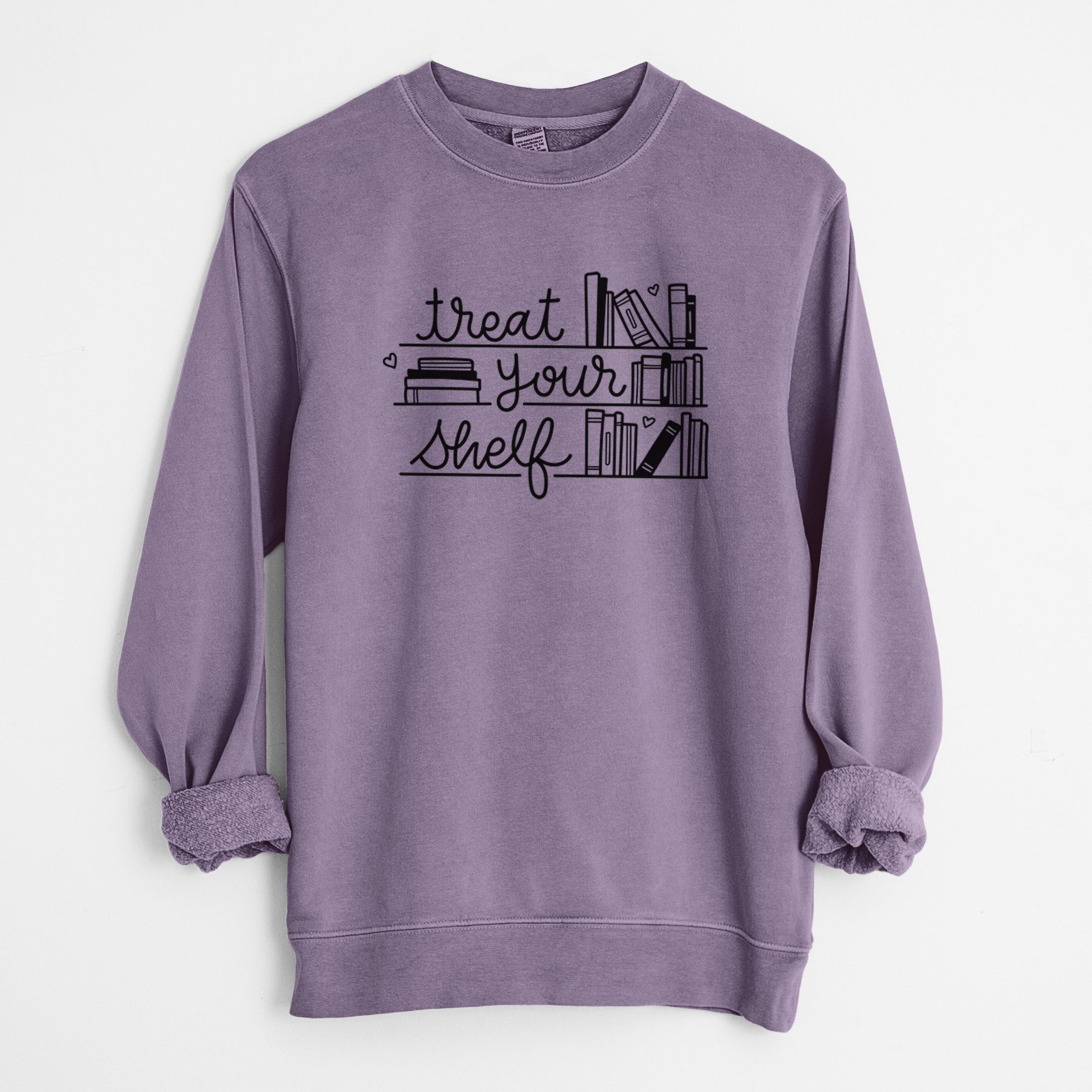 Treat Your Shelf - Book Pun - Unisex Pigment Dyed Crew Sweatshirt