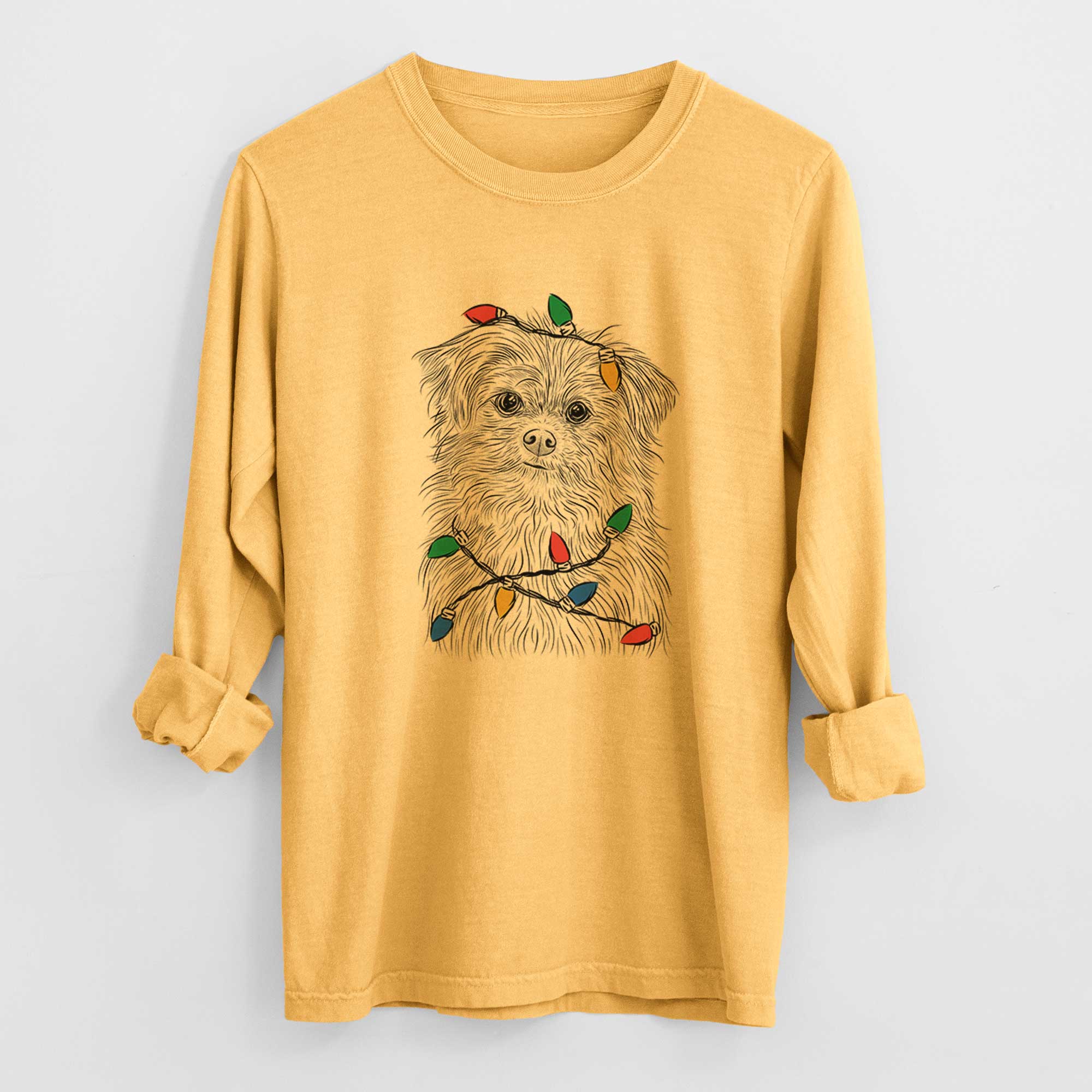 Christmas Lights Trixie the Terrier Mix - Heavyweight 100% Cotton Long Sleeve