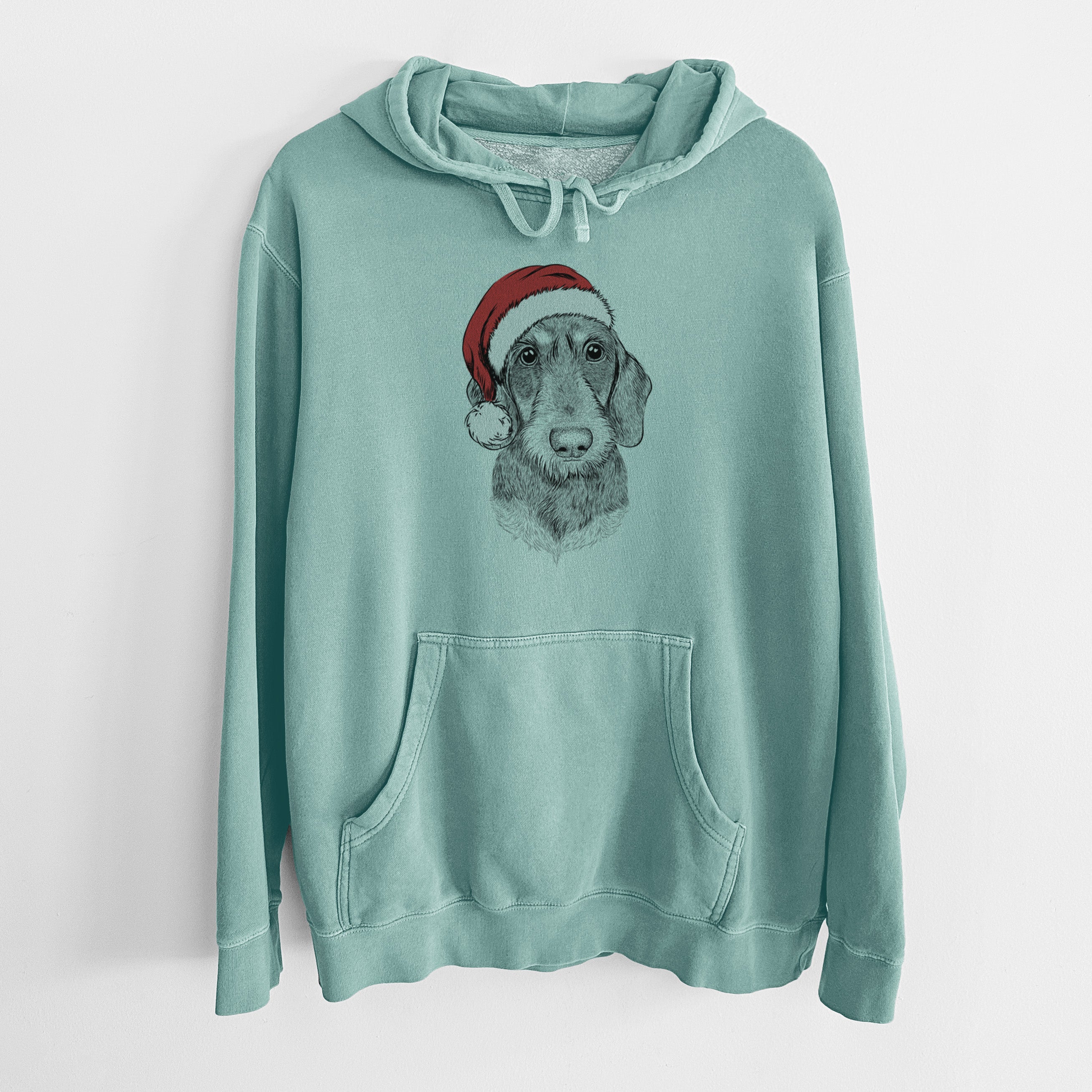 Santa Hat Truman the Wirehaired Dachshund - Unisex Pigment Dyed Hoodie