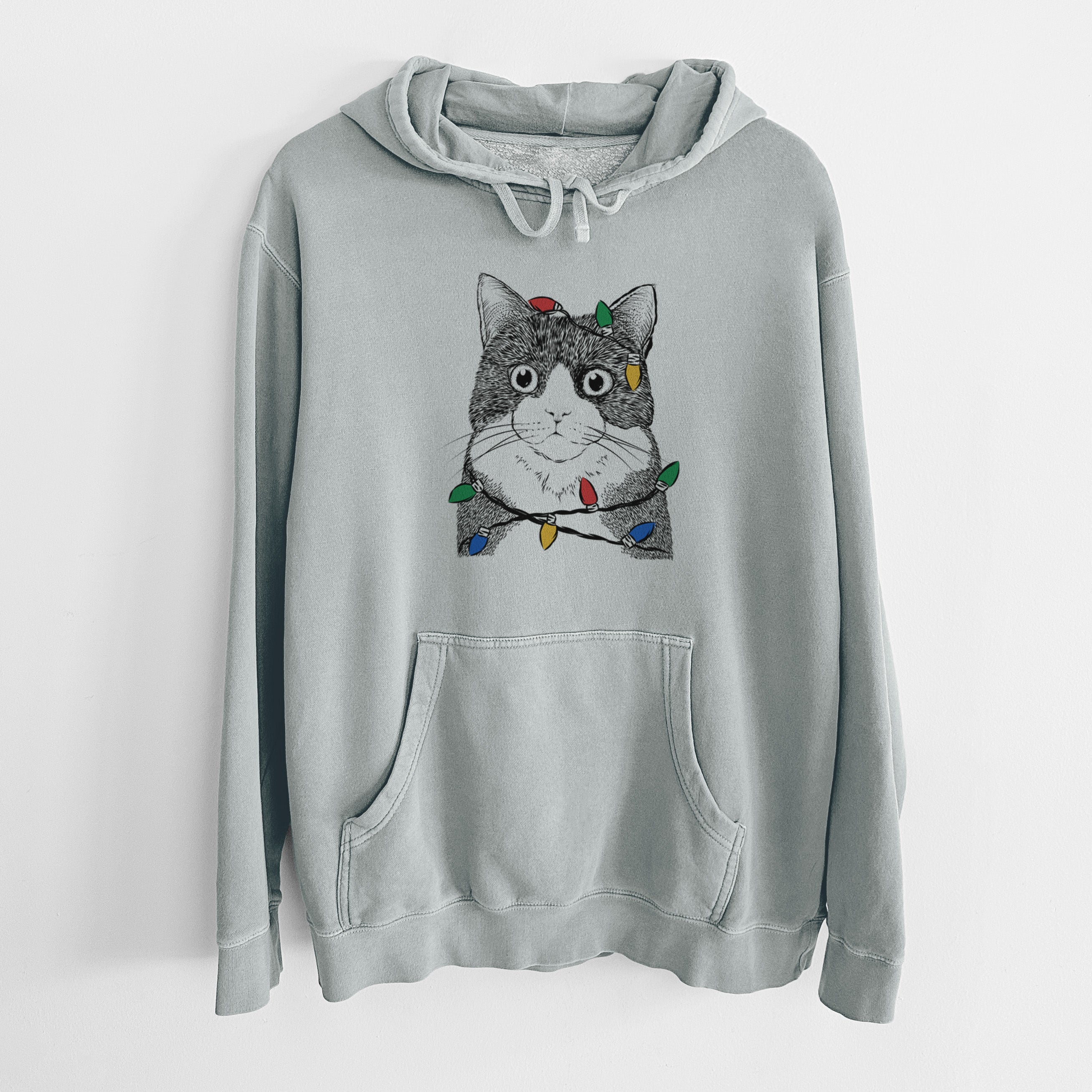 Christmas Lights Tux the Tuxedo Cat - Unisex Pigment Dyed Hoodie