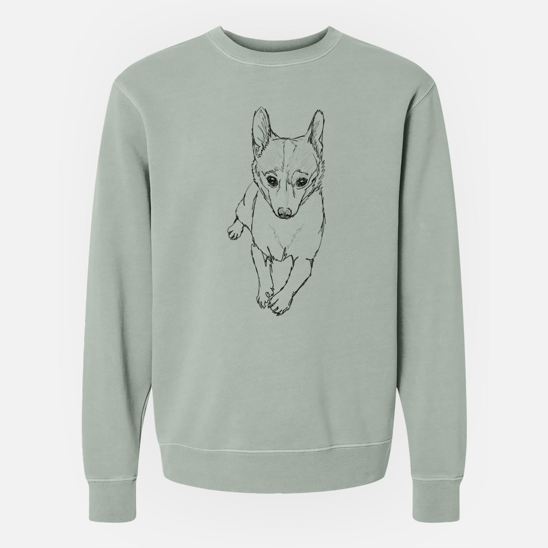 Doodled Buddy the Fox Terrier Chihuahua - Unisex Pigment Dyed Crew Sweatshirt