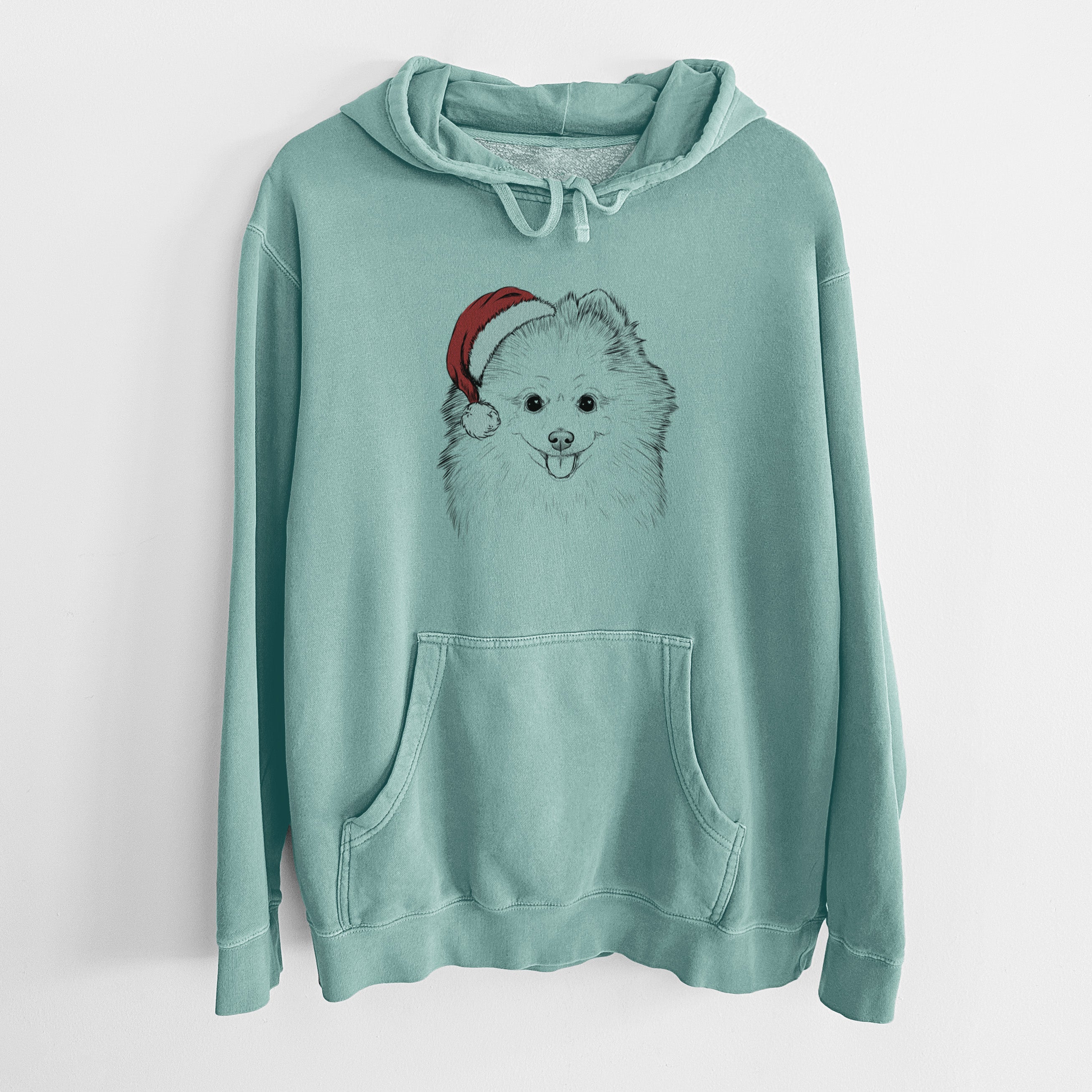 Santa Hat Piper Jo the Pomeranian - Unisex Pigment Dyed Hoodie