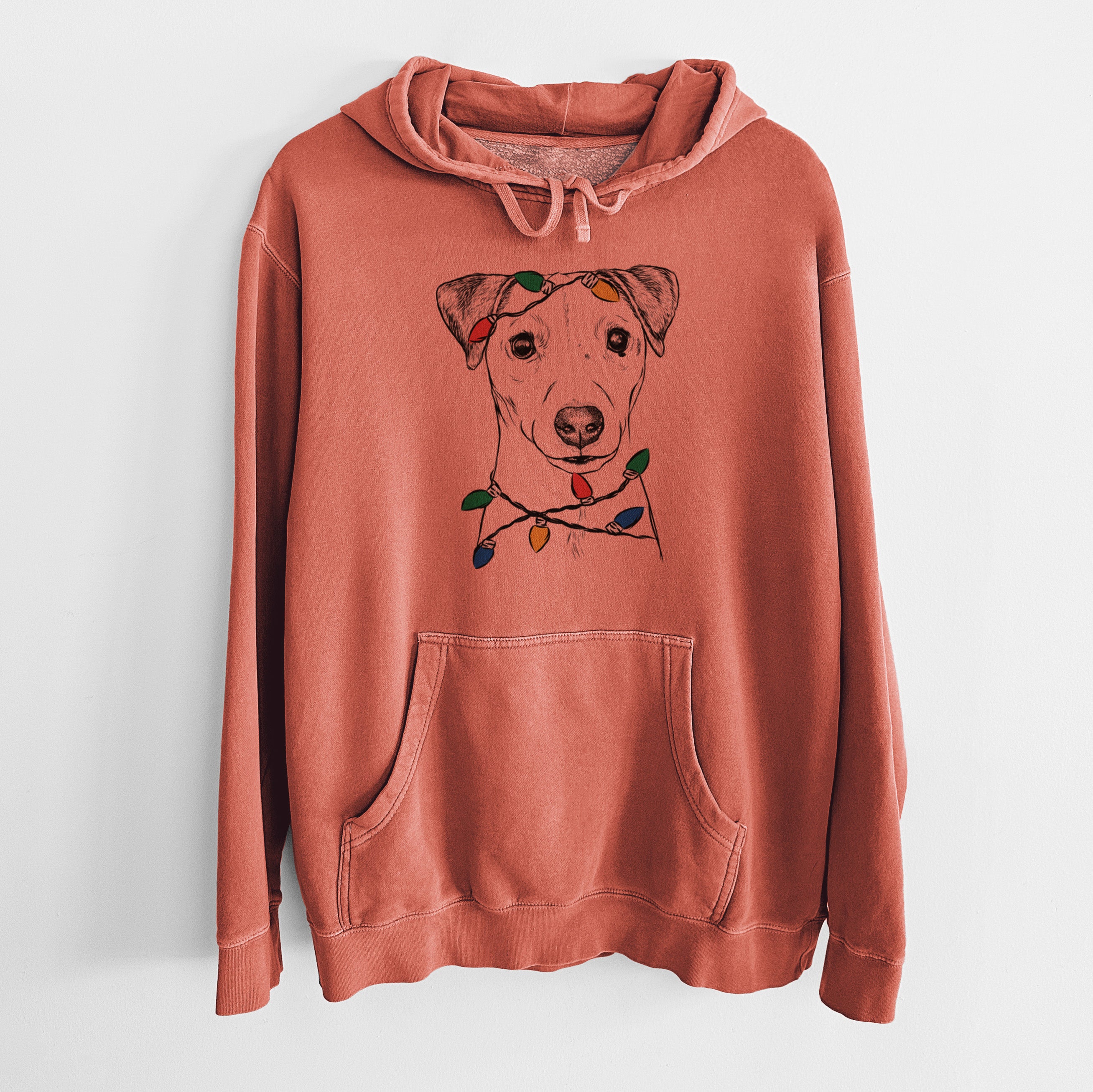 Christmas Lights Ally the Jack Russell Terrier - Unisex Pigment Dyed Hoodie