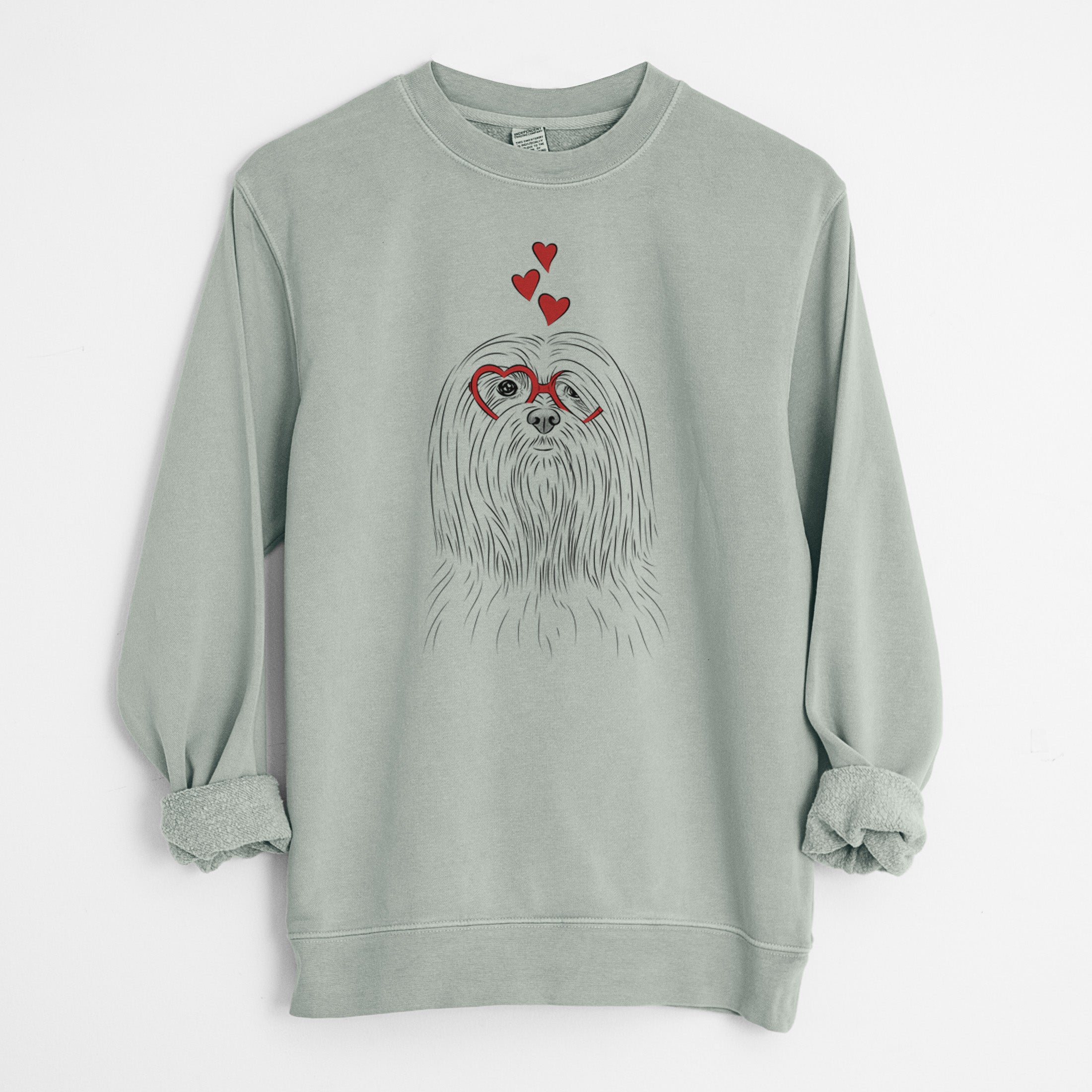 Valentine Lorenzo the Lhasa Apso - Unisex Pigment Dyed Crew Sweatshirt