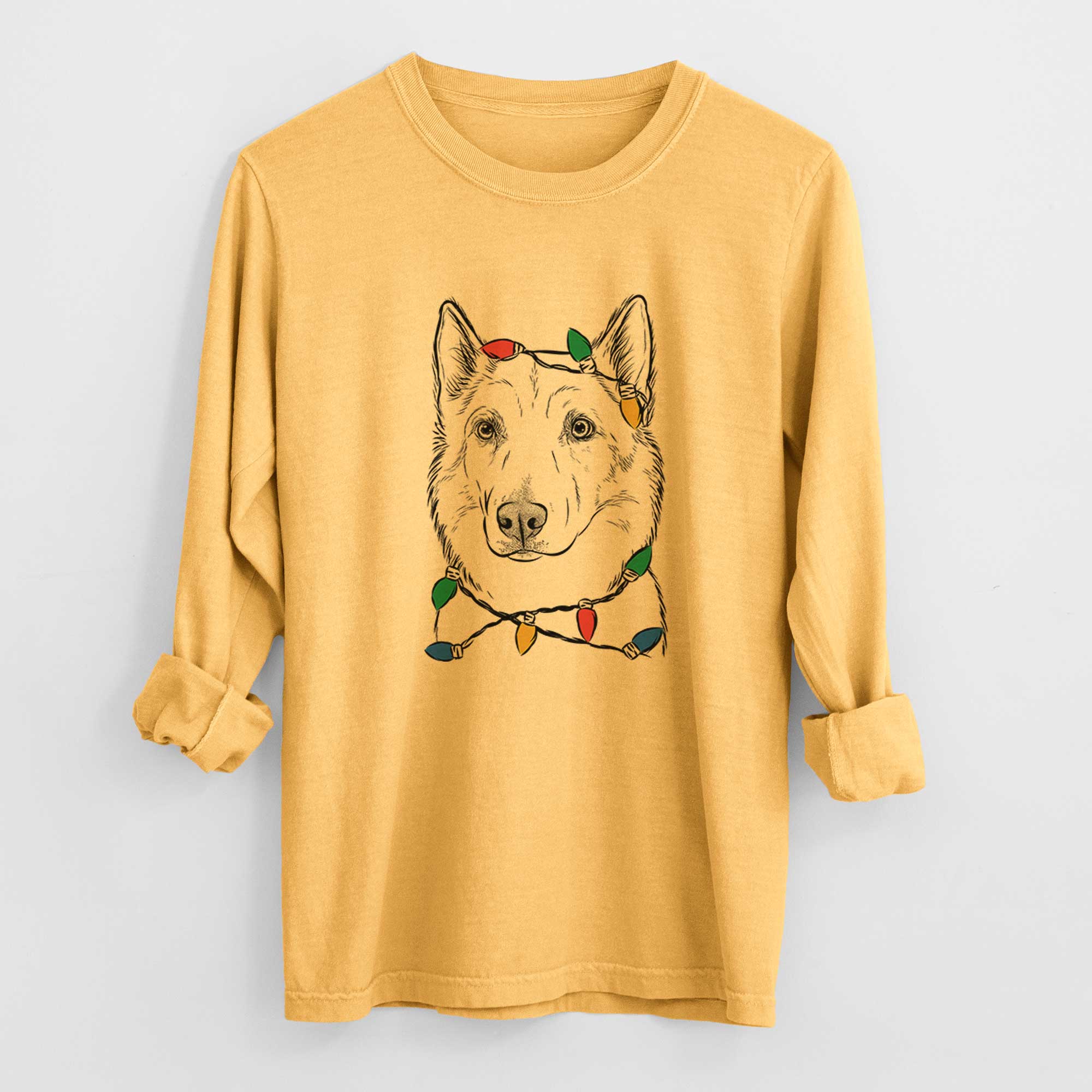 Christmas Lights Vox the Siberian Husky - Heavyweight 100% Cotton Long Sleeve