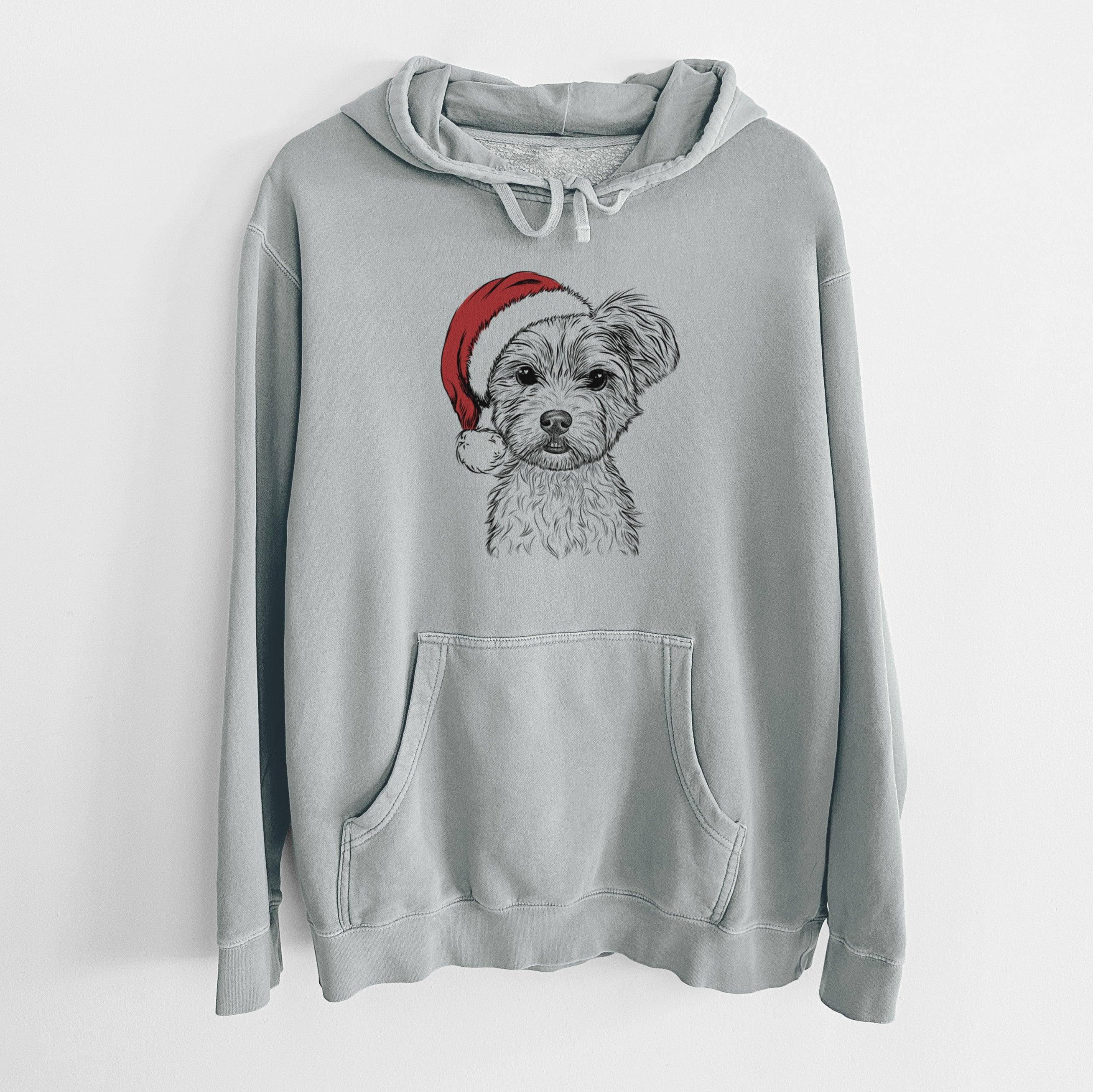 Santa Hat William Mitchell Newman the Yorkshire Terrier - Unisex Pigment Dyed Hoodie