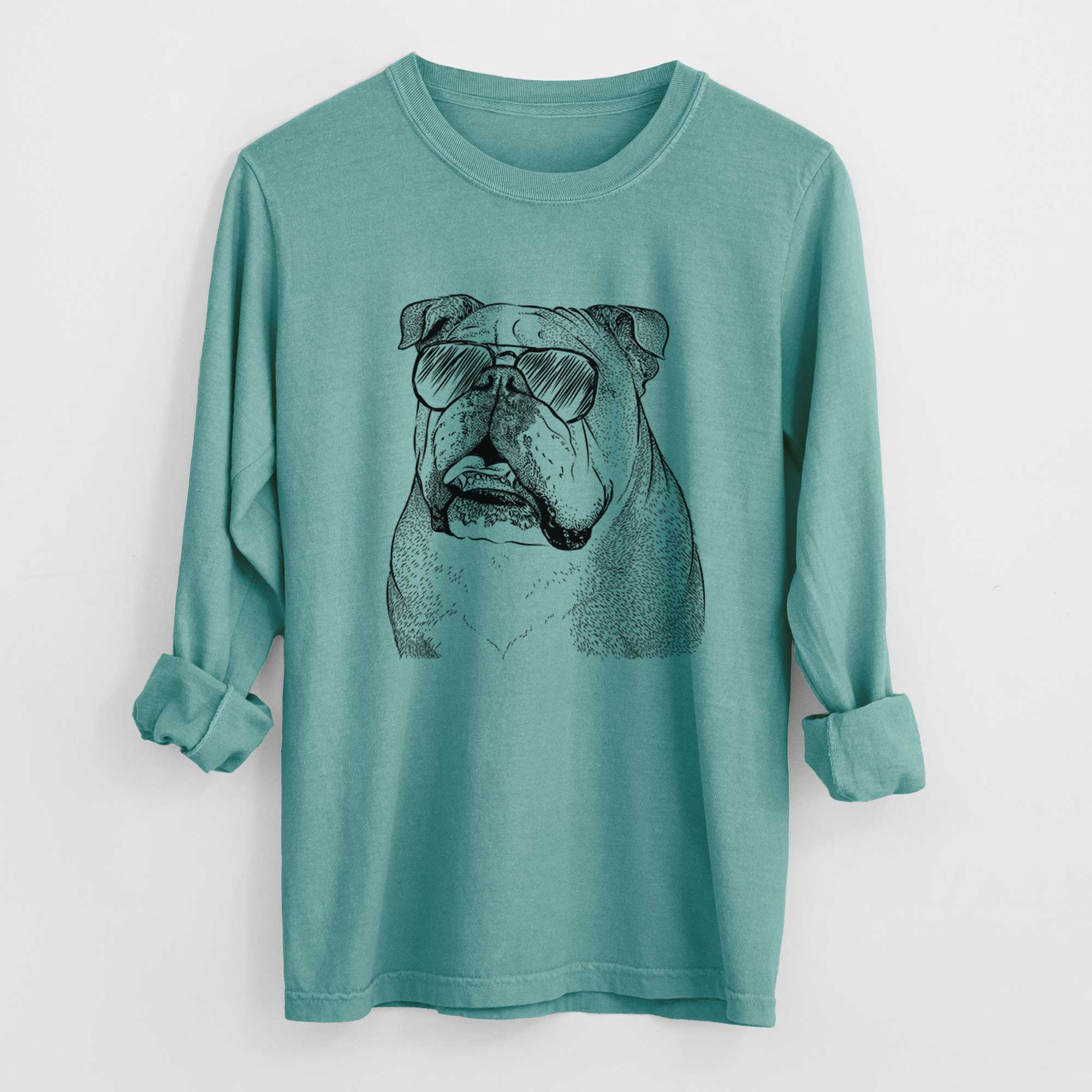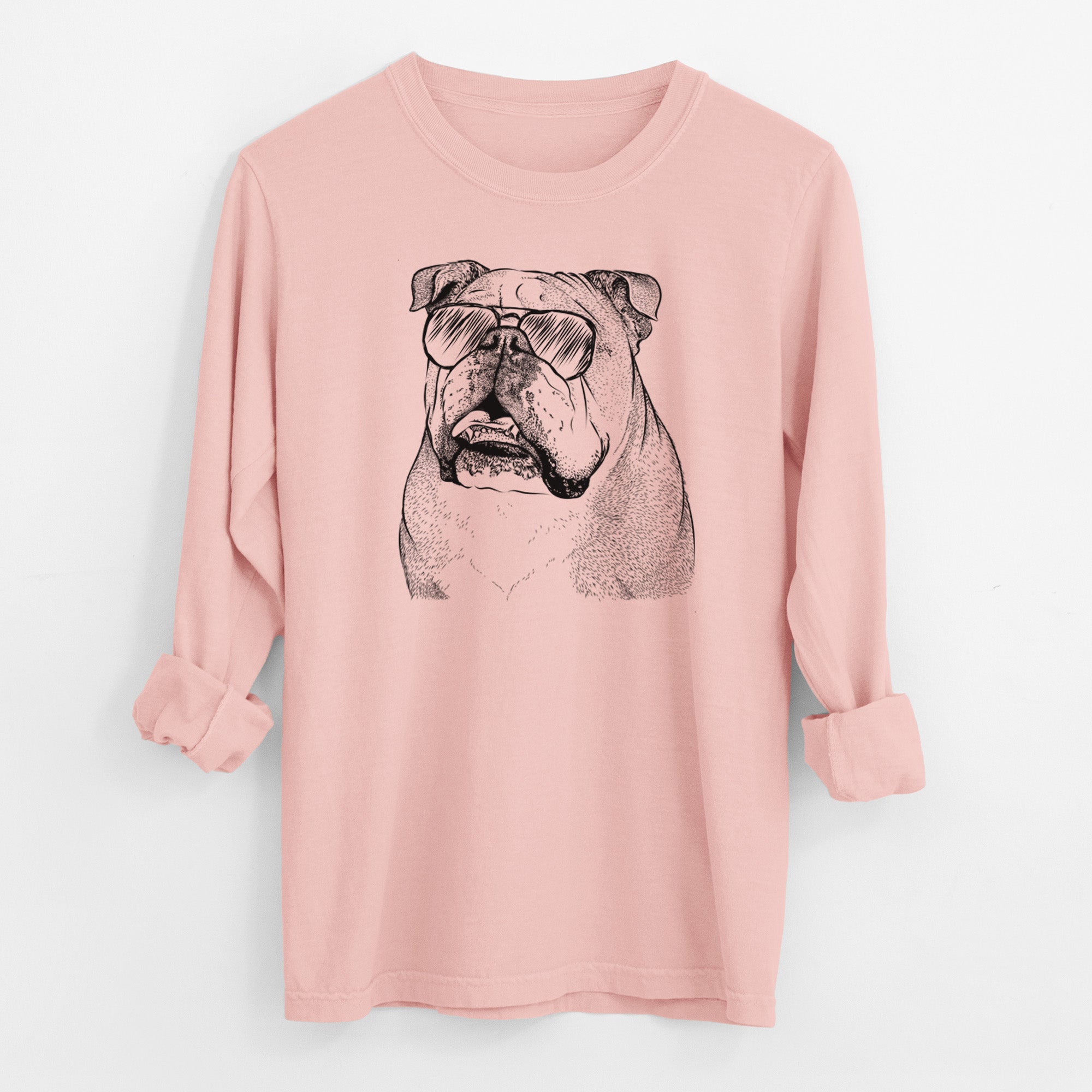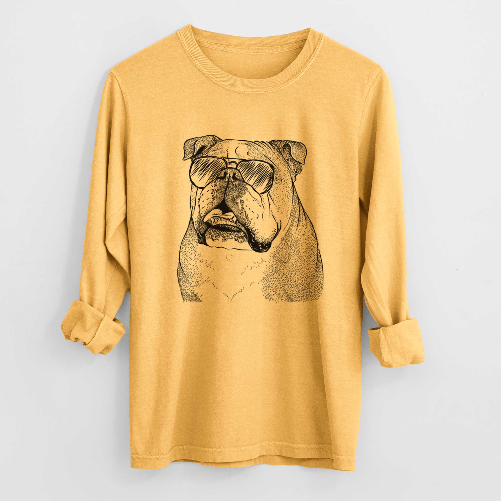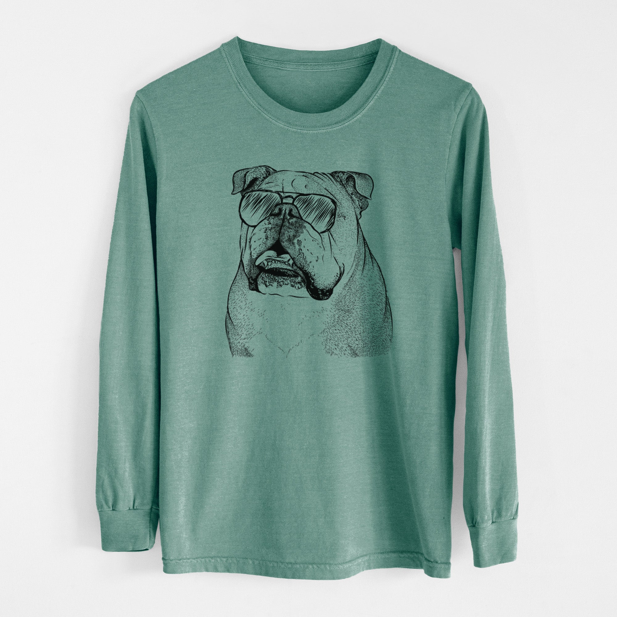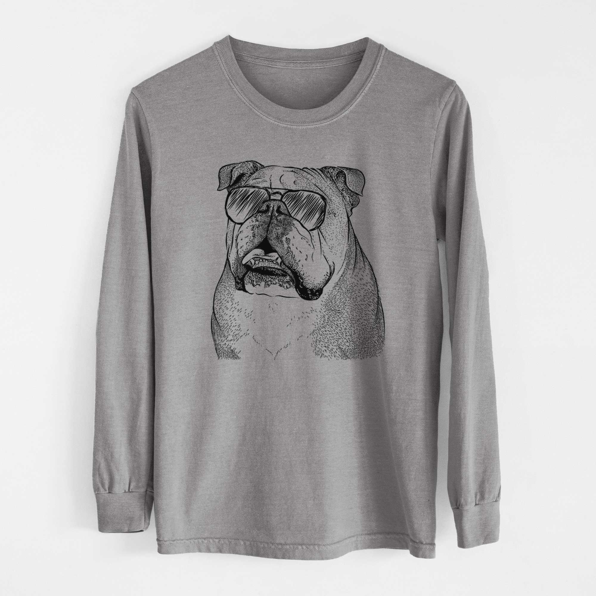 Aviator Piggy the English Bulldog - Men's Heavyweight 100% Cotton Long Sleeve