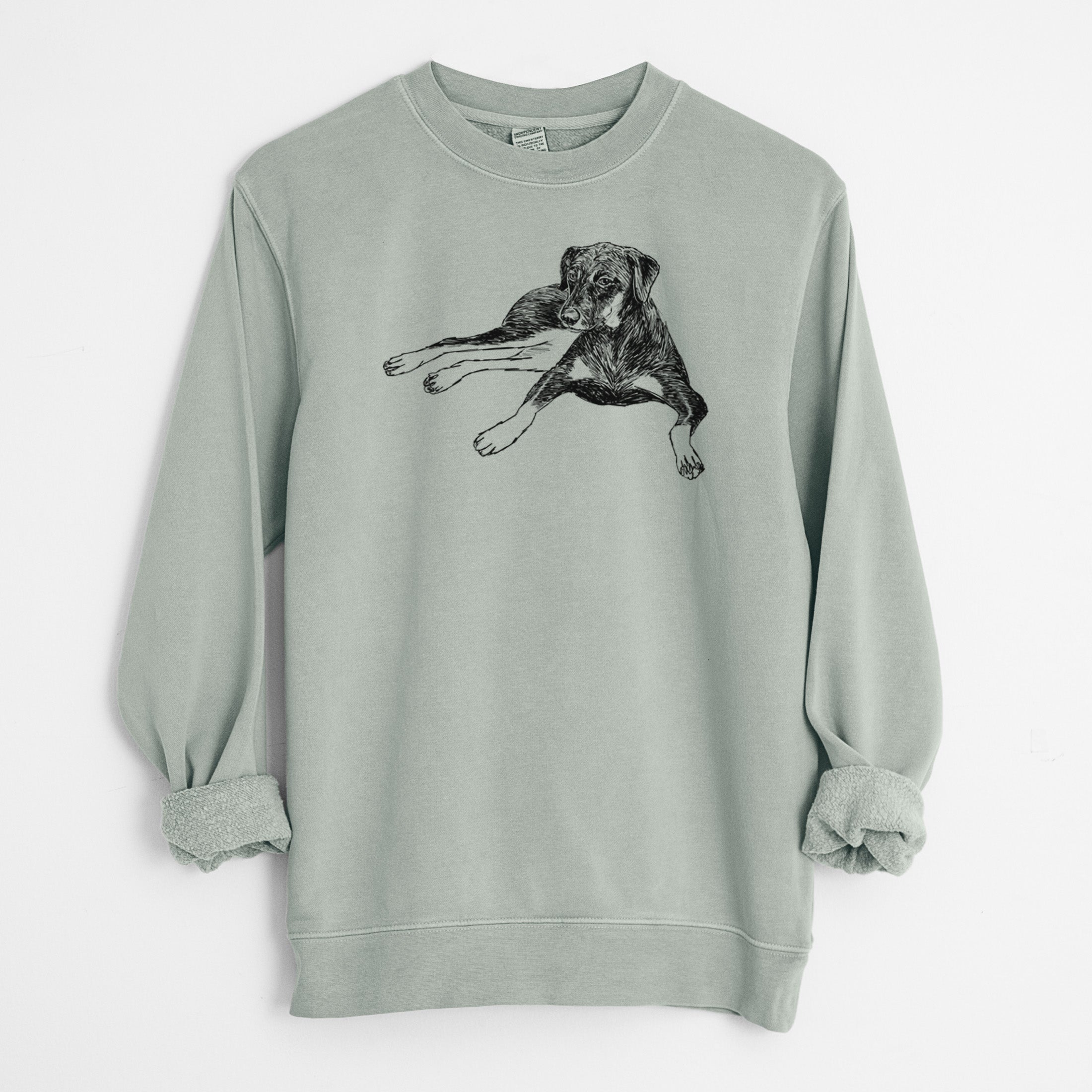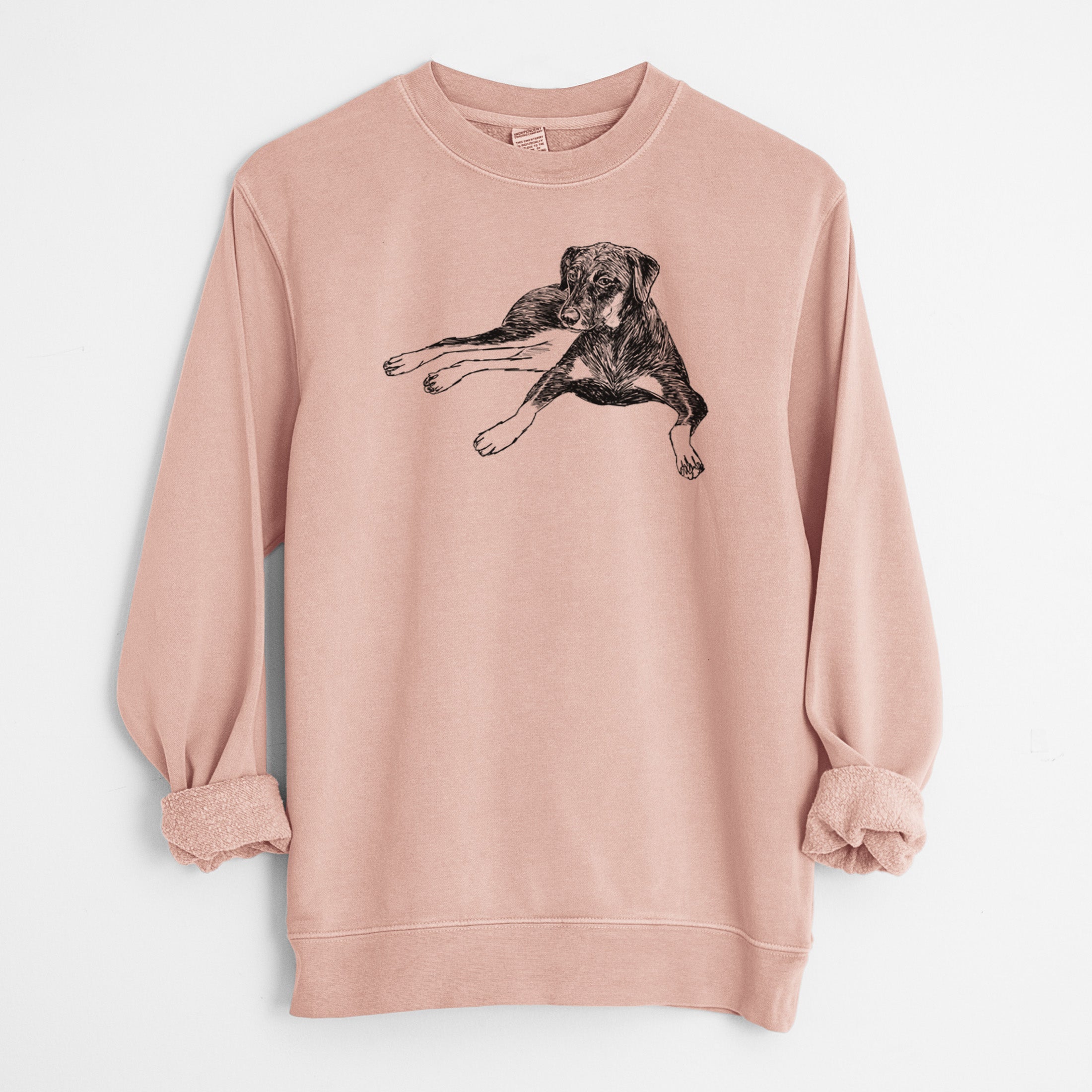 Doodled Penny Lee the Mixed Breed - Unisex Pigment Dyed Crew Sweatshirt