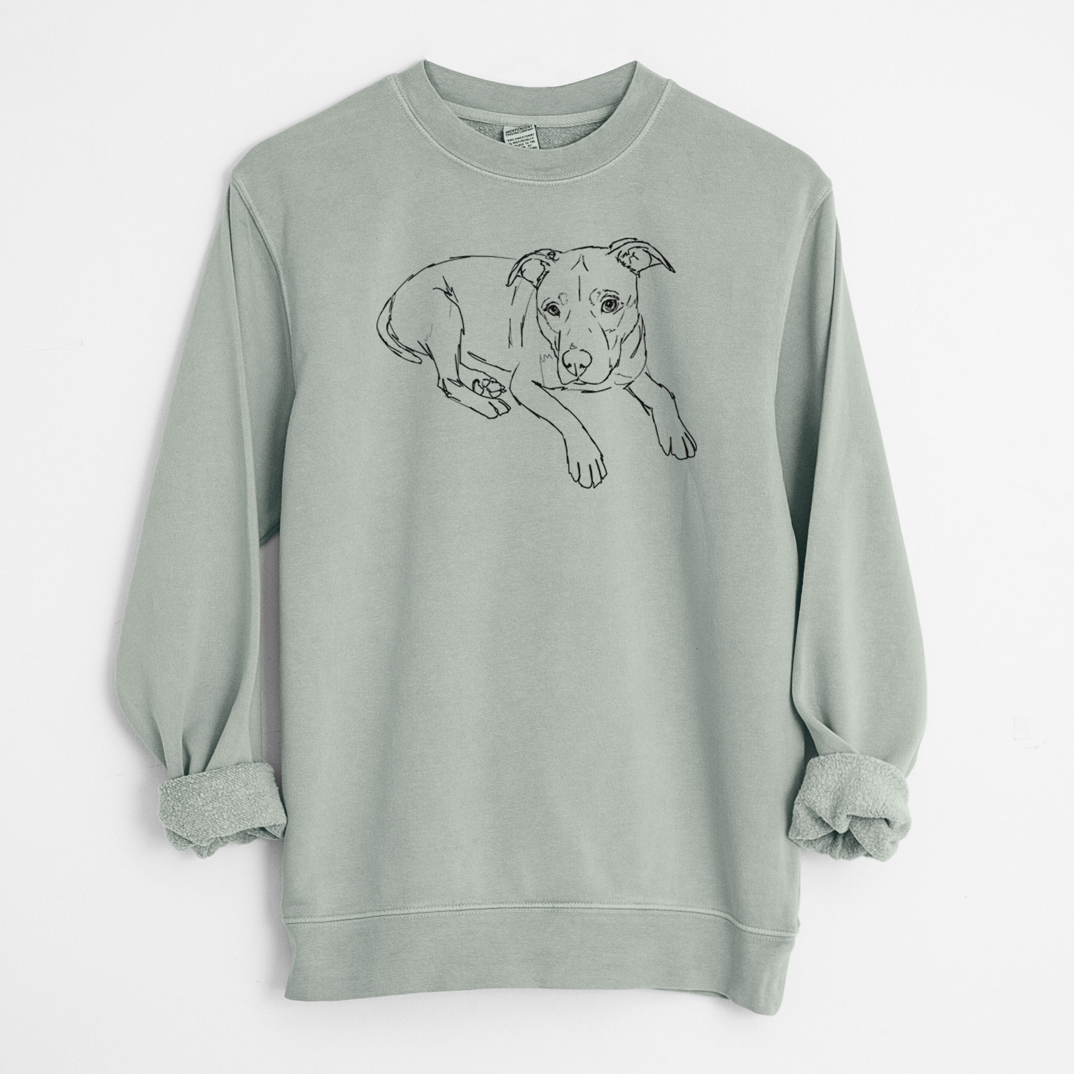 Doodled Pogo the Pitbull - Unisex Pigment Dyed Crew Sweatshirt