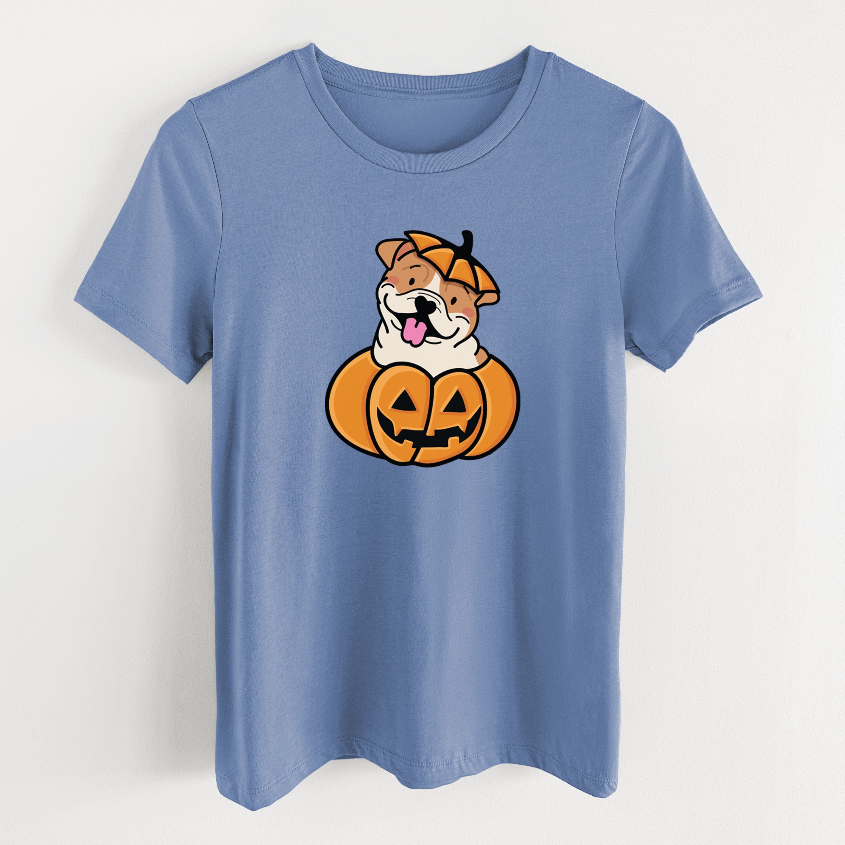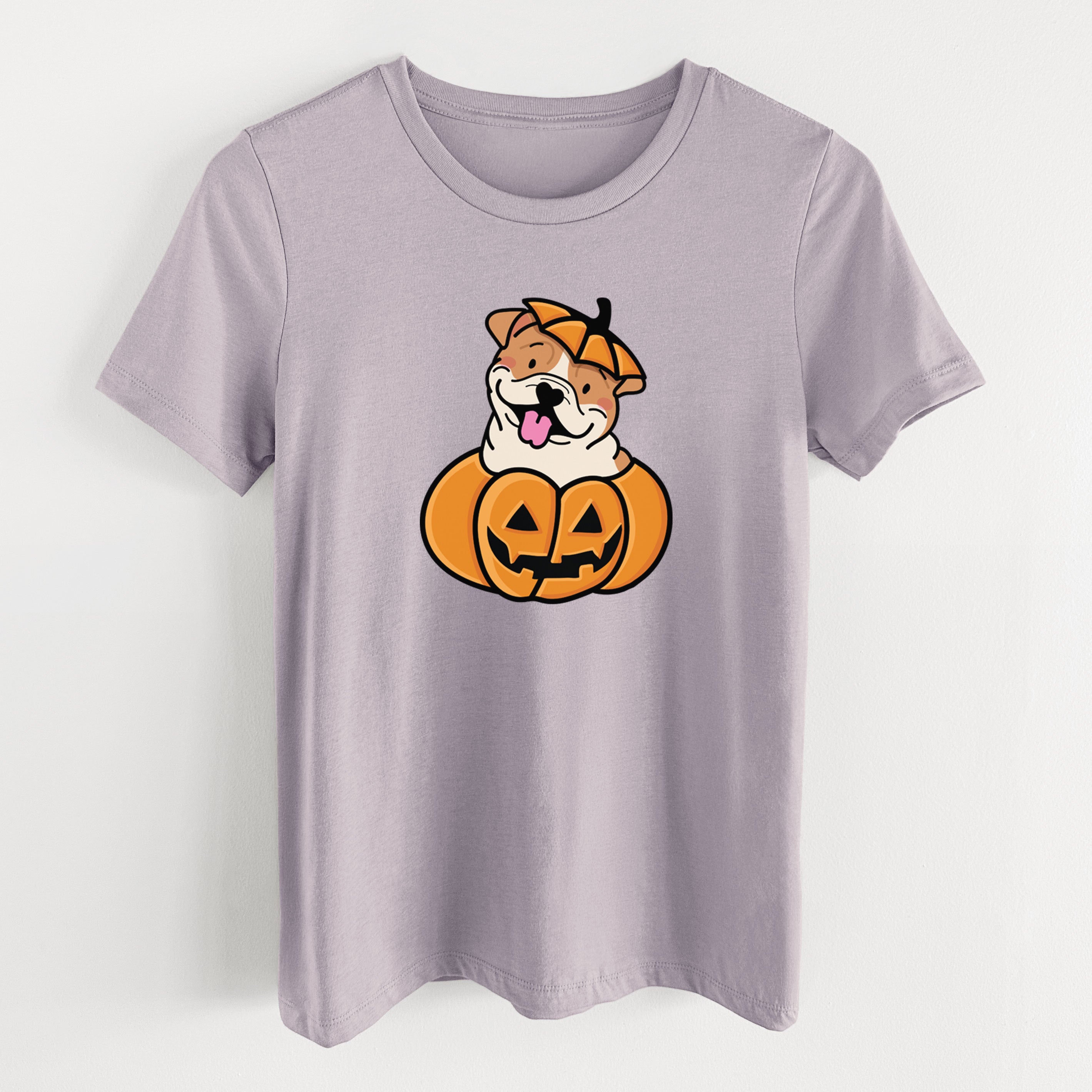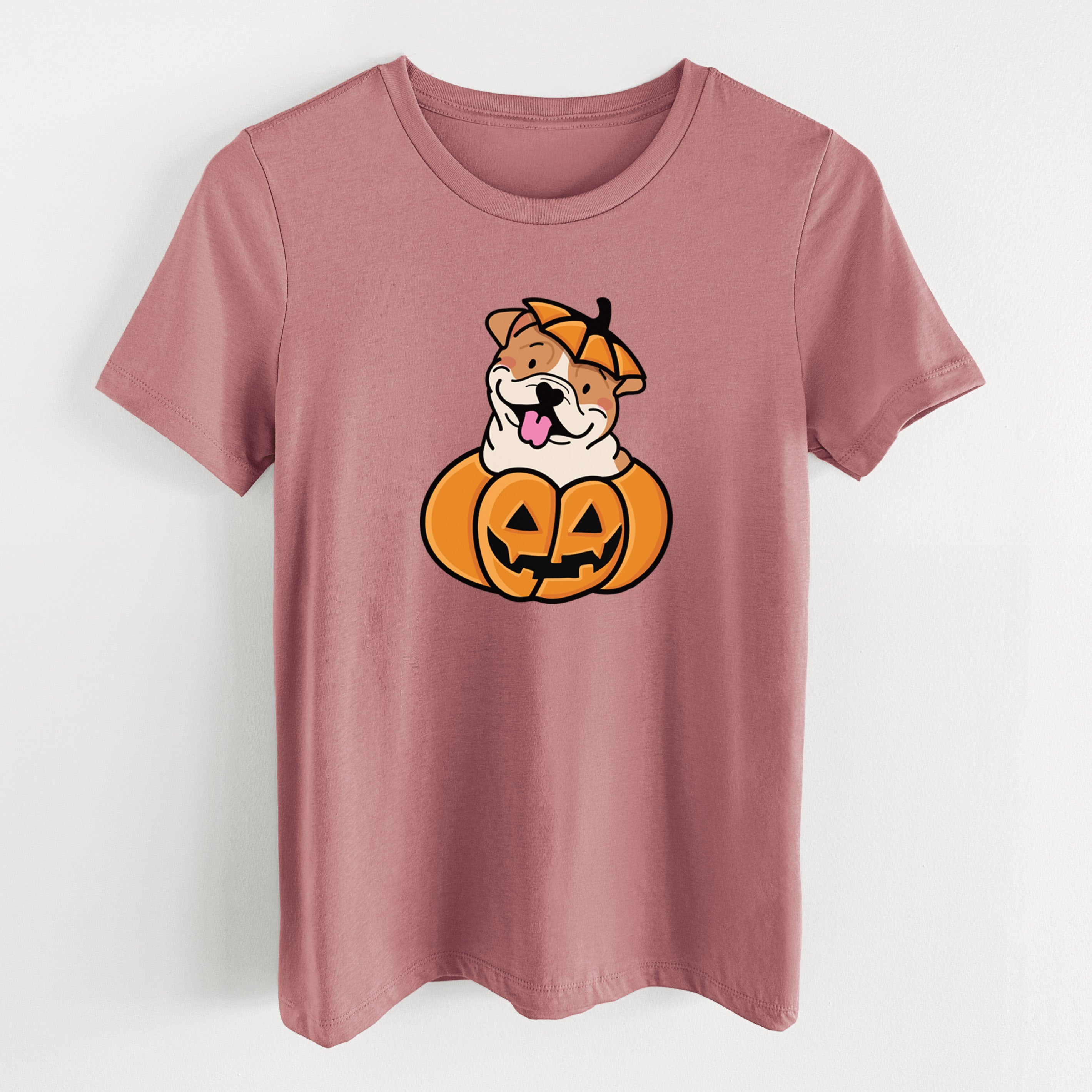 Pumpkin Pup - English Bulldog - Women's Lightweight Relaxed Fit 100% Cotton Crewneck
