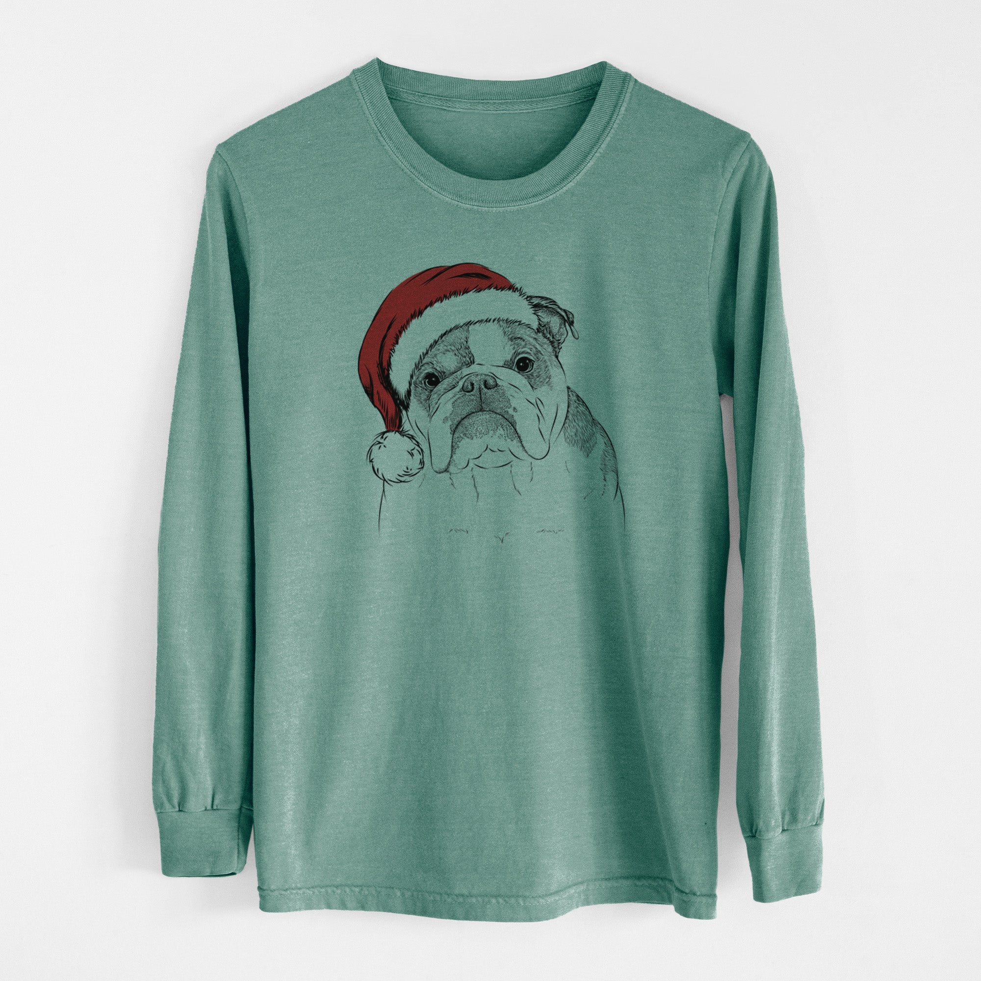 Santa Jack the English Bulldog - Men's Heavyweight 100% Cotton Long Sleeve
