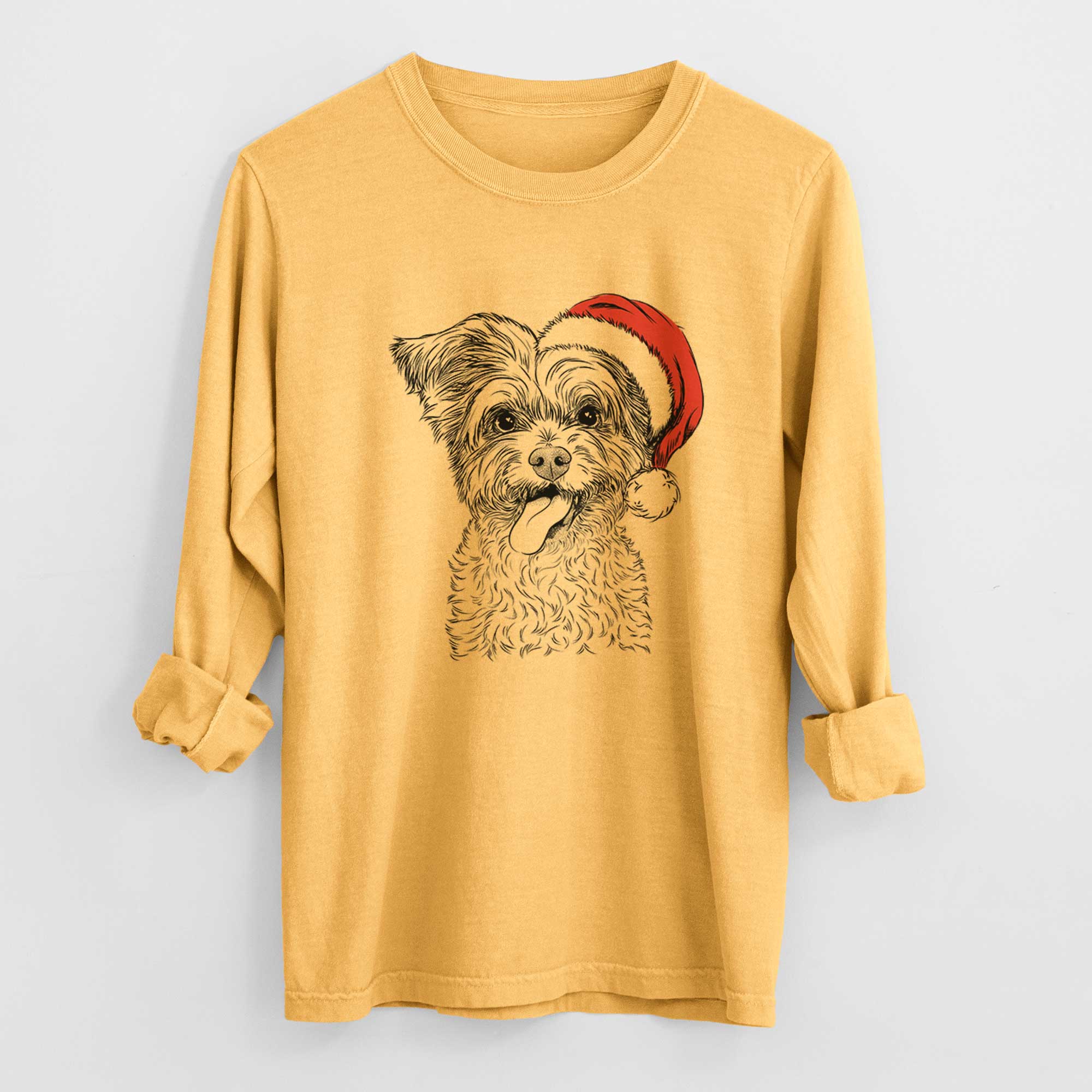 Santa Sweetie the Terrier Mix - Men's Heavyweight 100% Cotton Long Sleeve