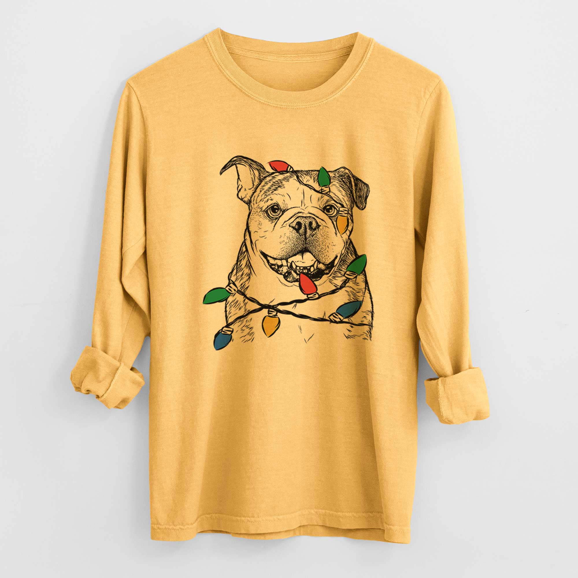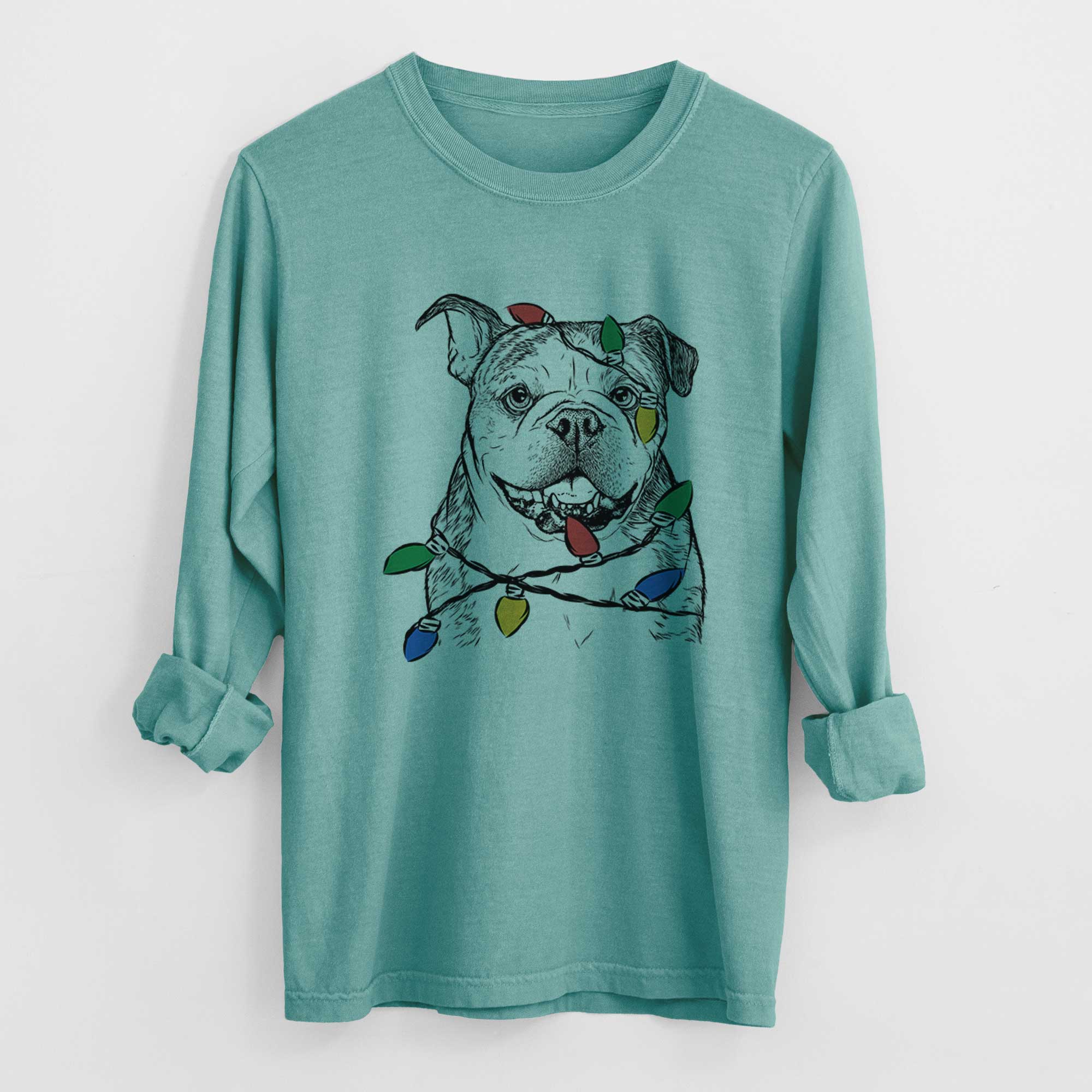 Christmas Lights Agatha the Boston Bulldog - Heavyweight 100% Cotton Long Sleeve